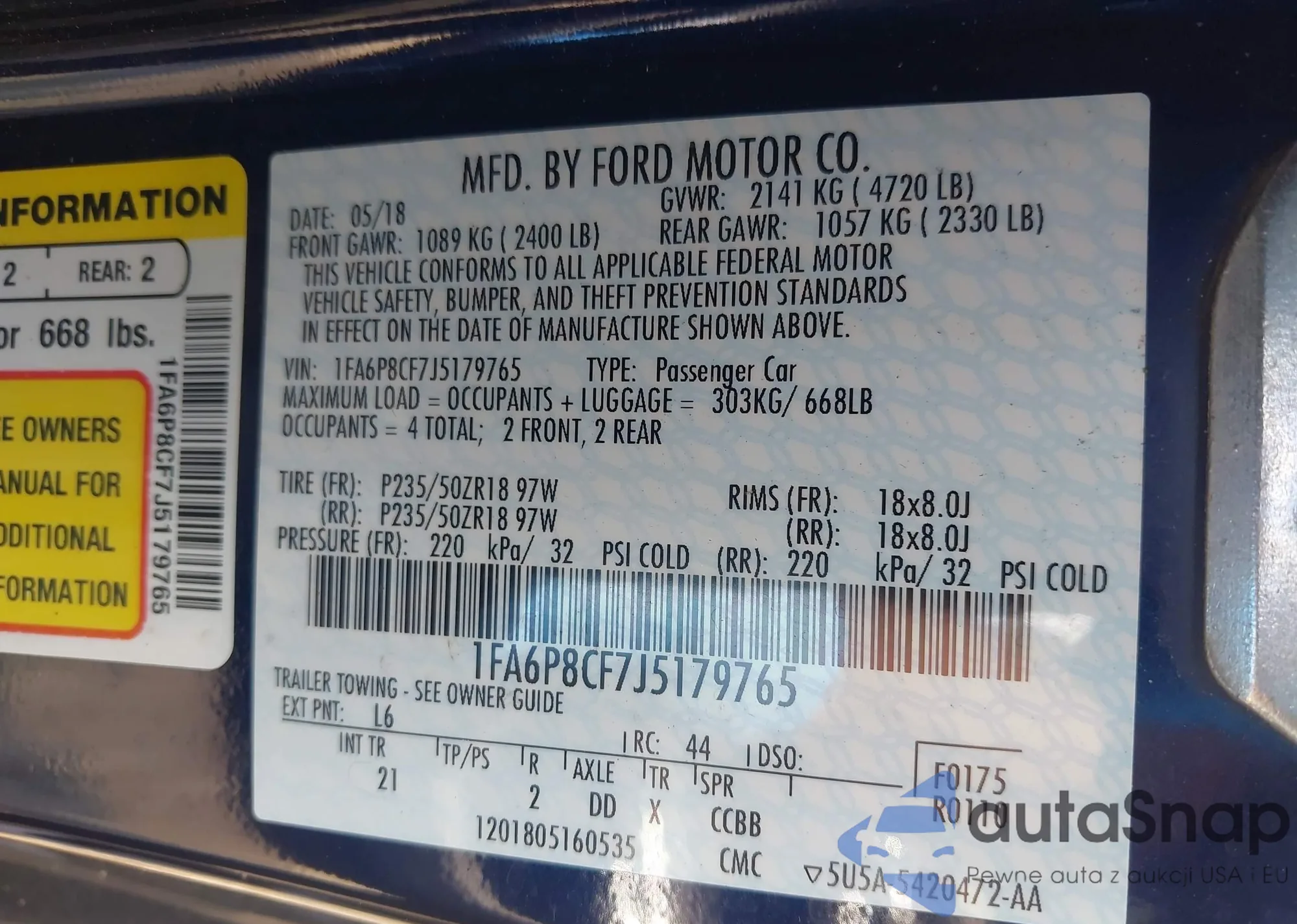 • VIN 1FA6P8CF7J5179765