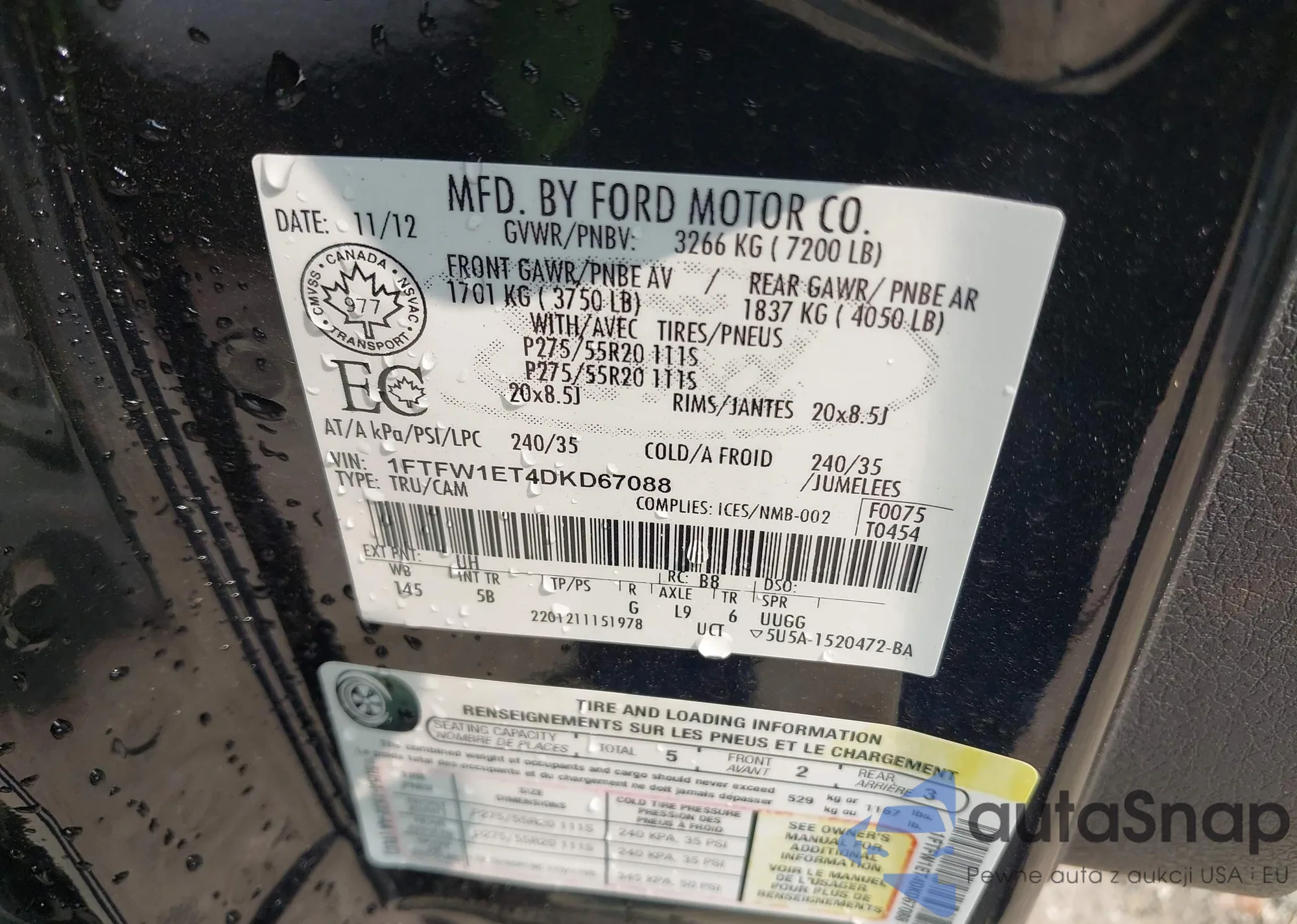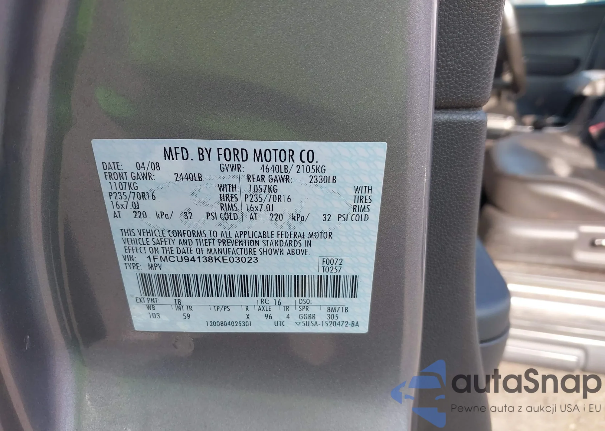 LOT: 42393358 VIN: 1FMCU94138KE03023