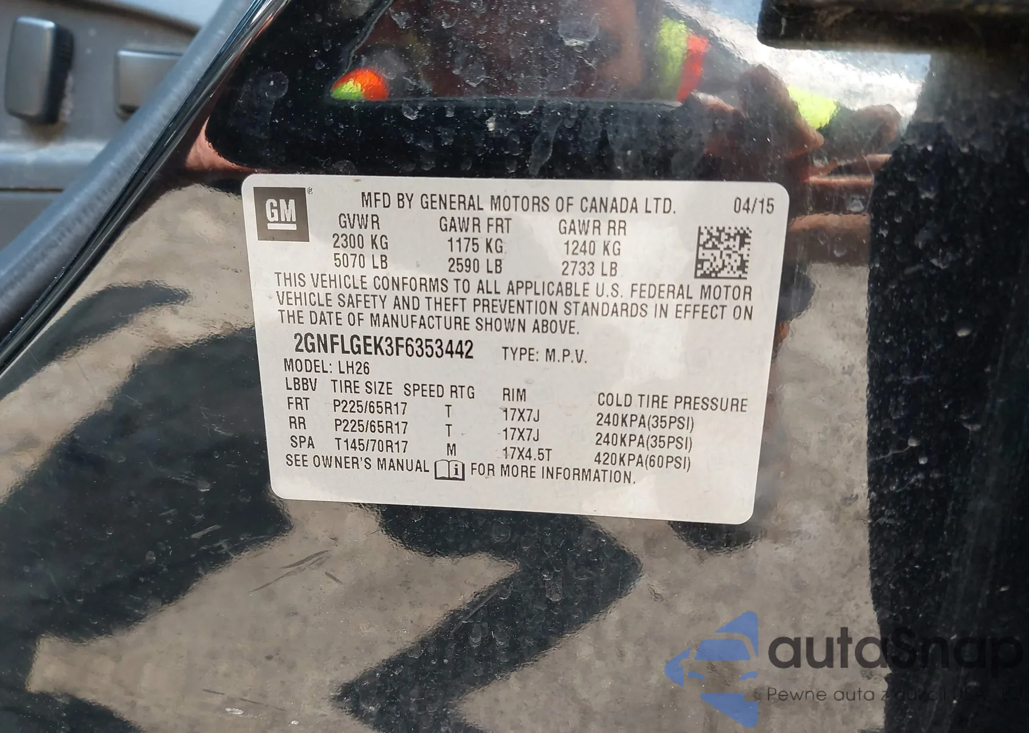 • VIN 2GNFLGEK3F6353442