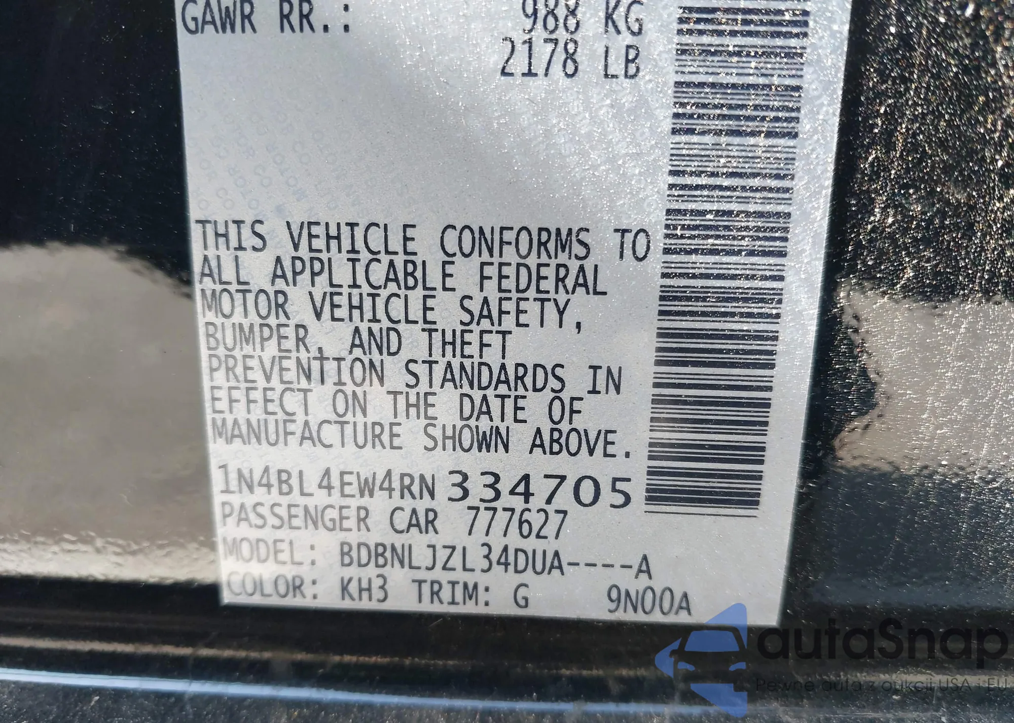 LOT: 41971285 VIN: 1N4BL4EW4RN334705
