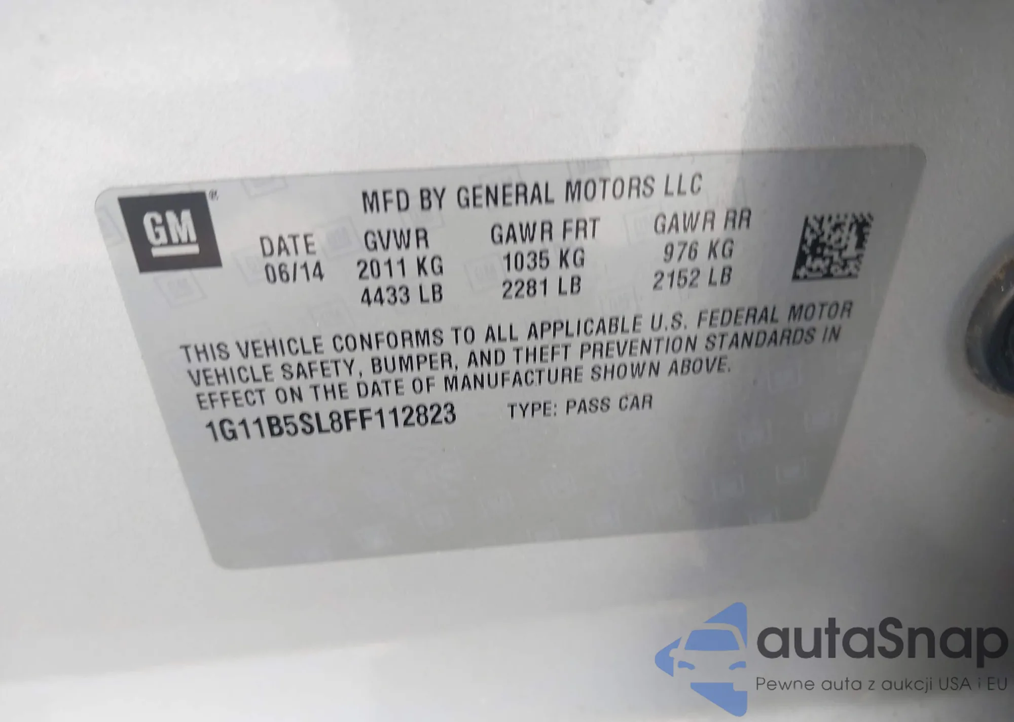 LOT: 42092886 VIN: 1G11B5SL8FF112823