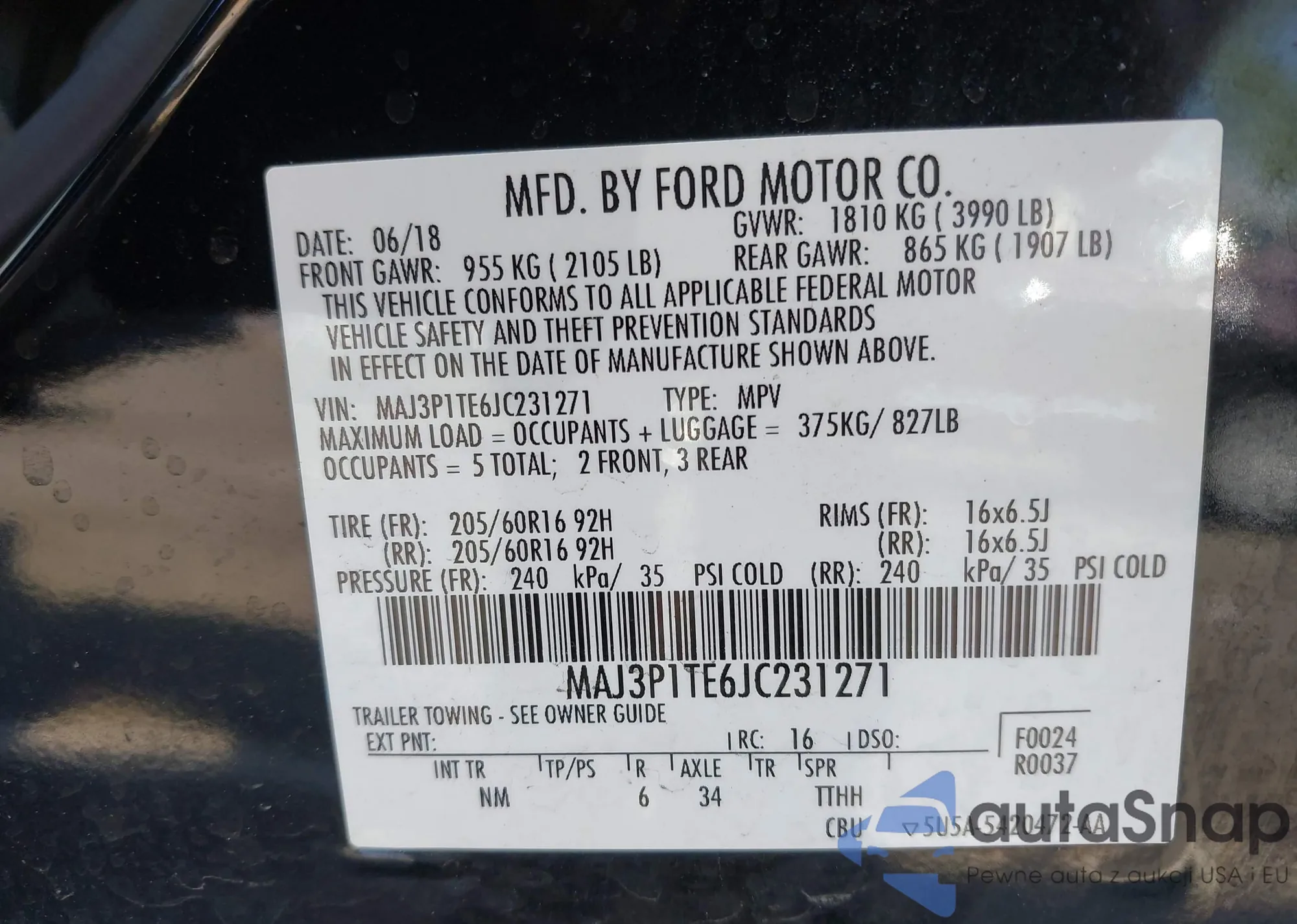 • VIN MAJ3P1TE6JC231271
