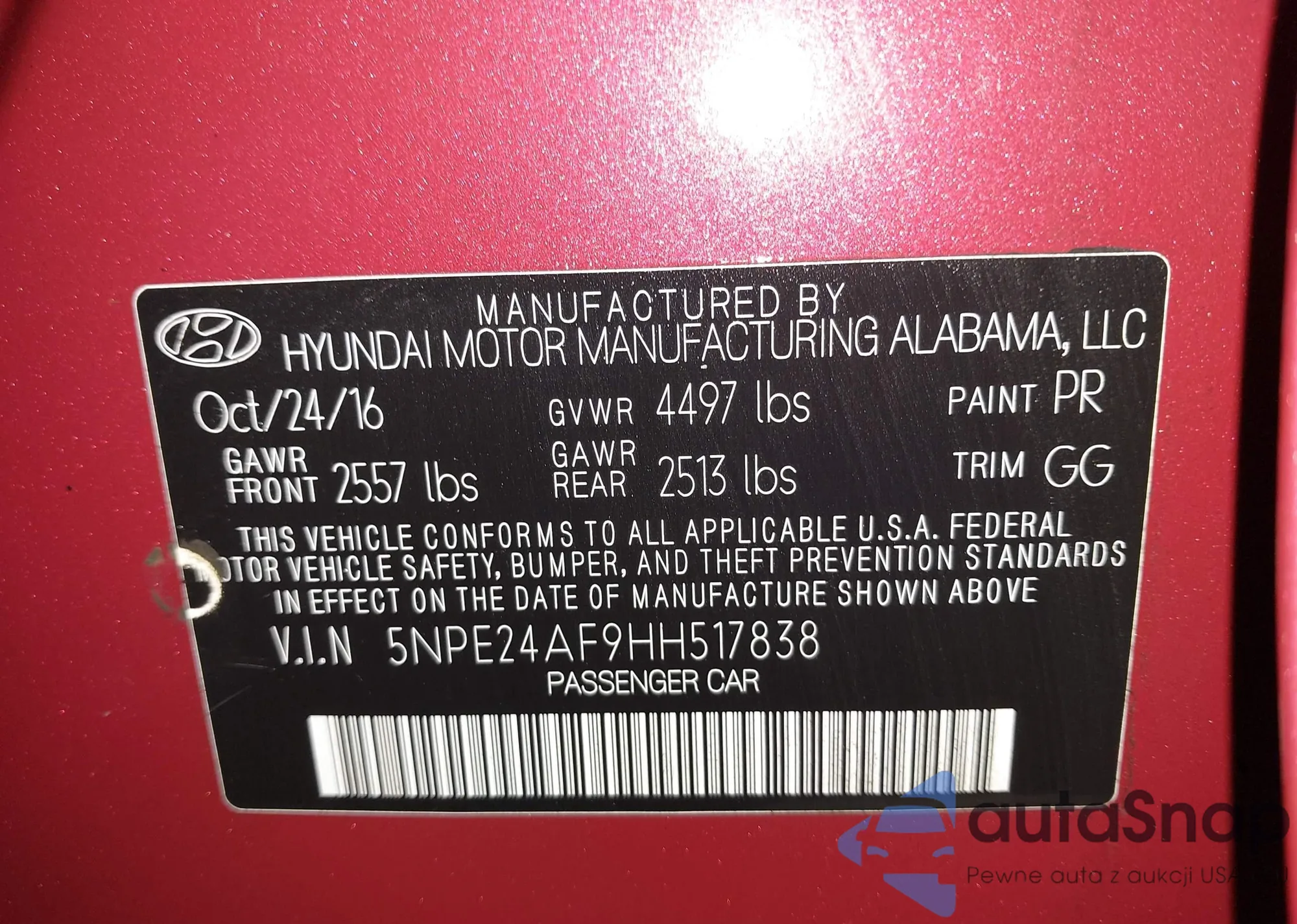 • VIN 5NPE24AF9HH517838