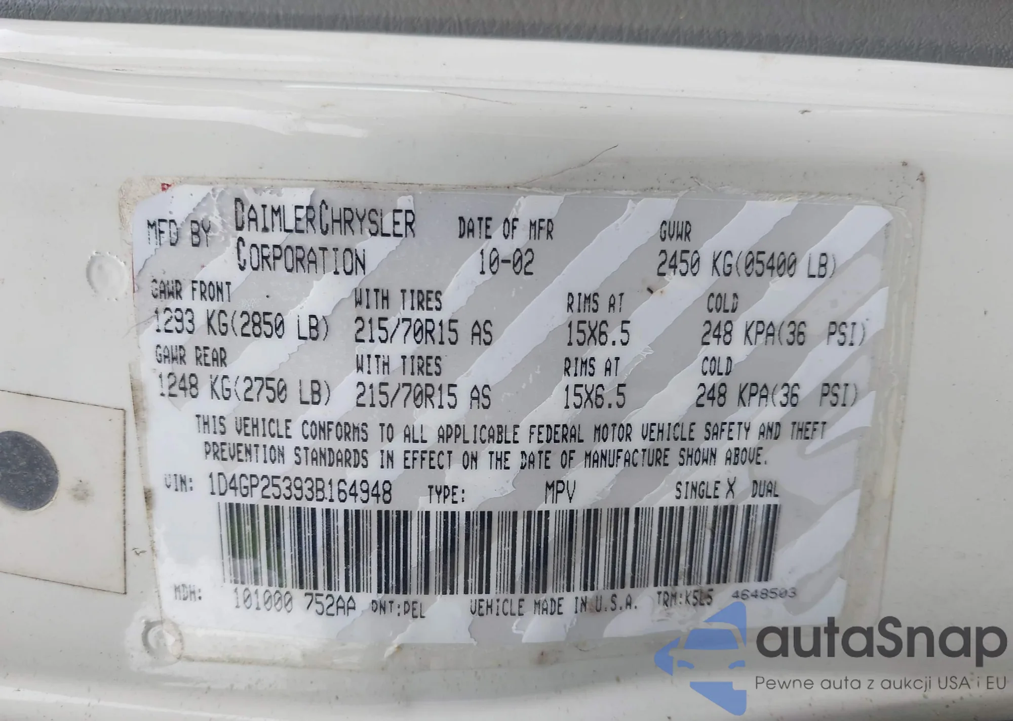 • VIN 2C4RDGCGXKR657801