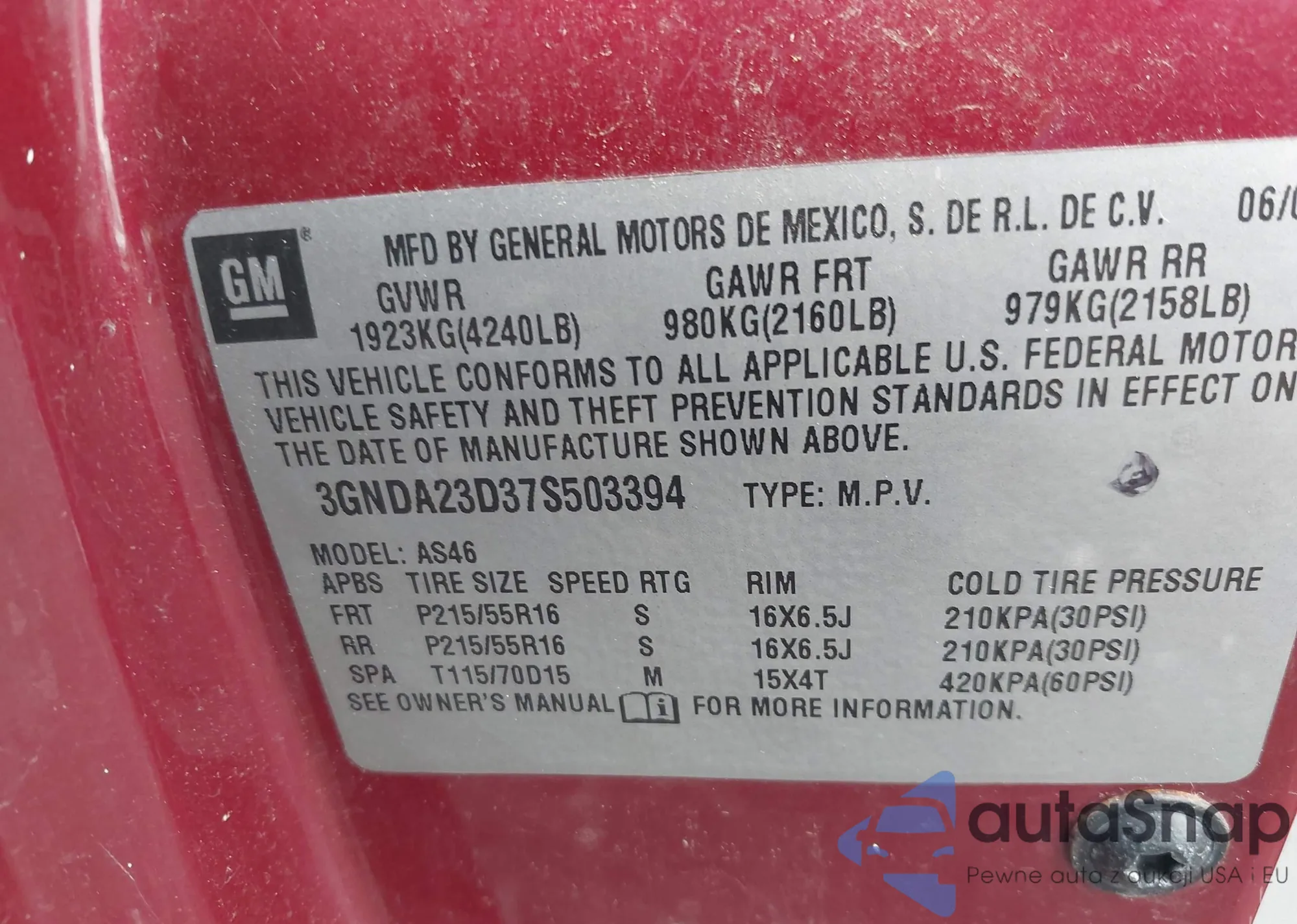 • VIN 3GNDA23D37S503394