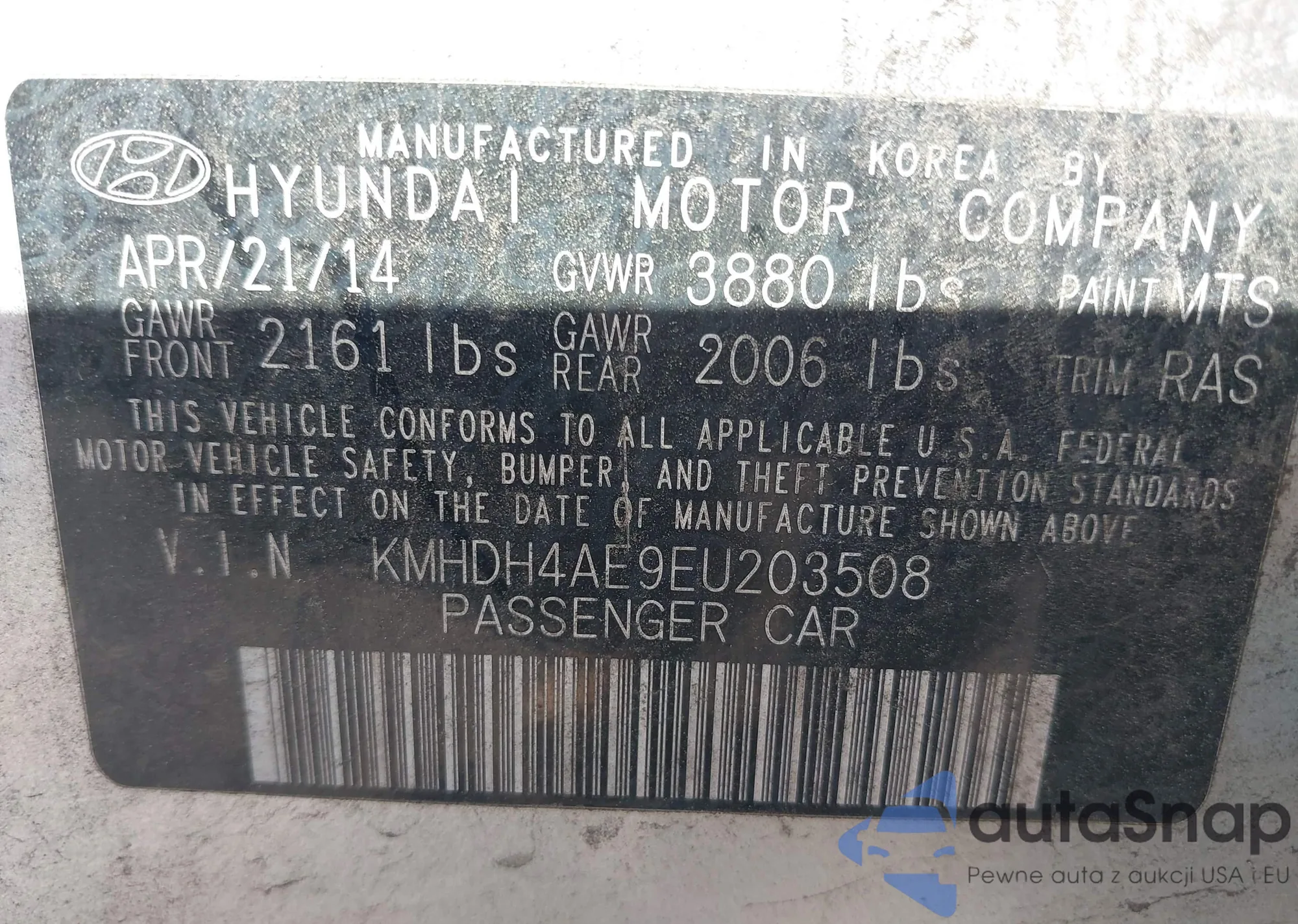 • VIN KMHDH4AE9EU203508