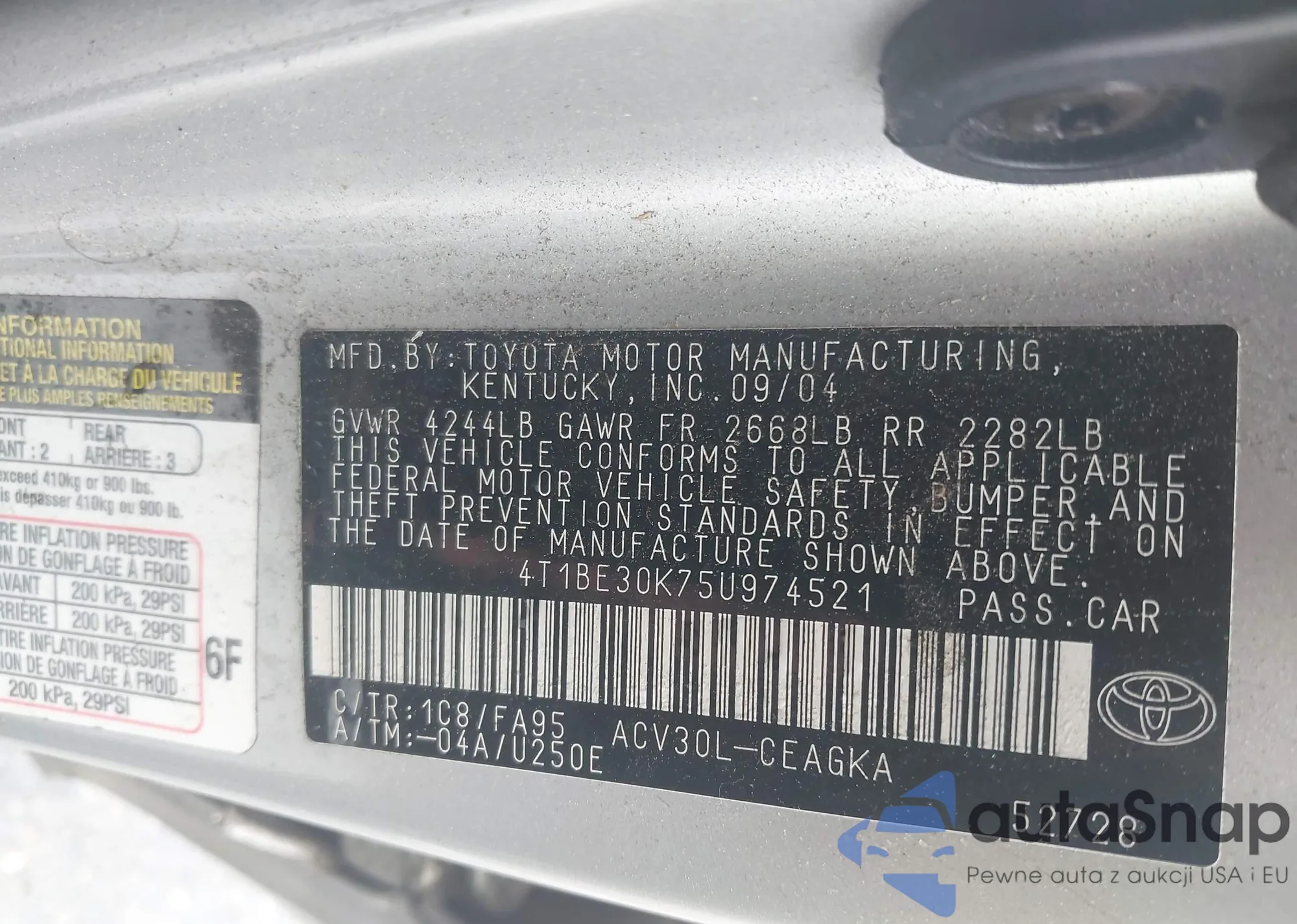 • VIN 4T1BE30K75U974521