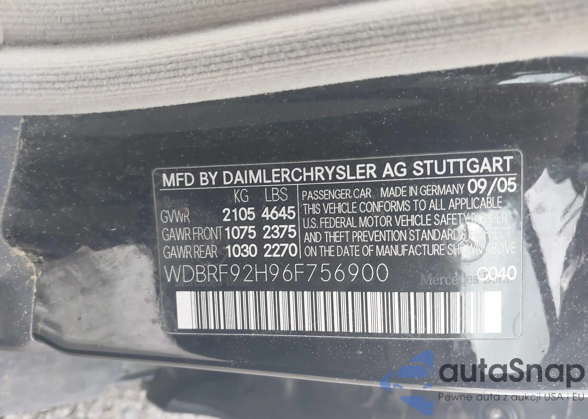 LOT: 42375982 VIN: WDBRF92H96F756900