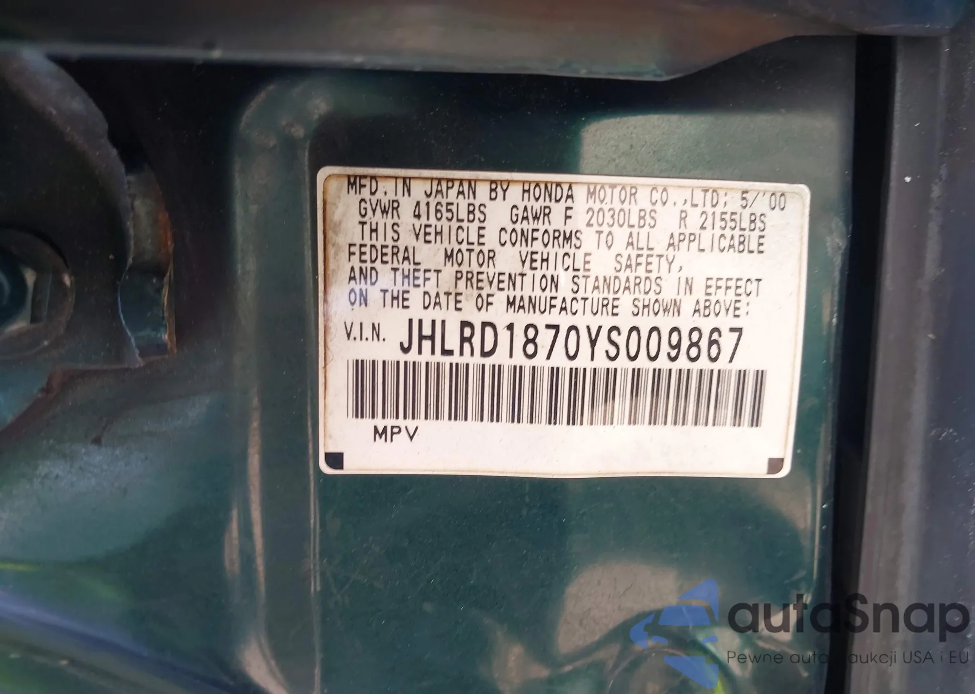 • VIN JHLRD1870YS009867