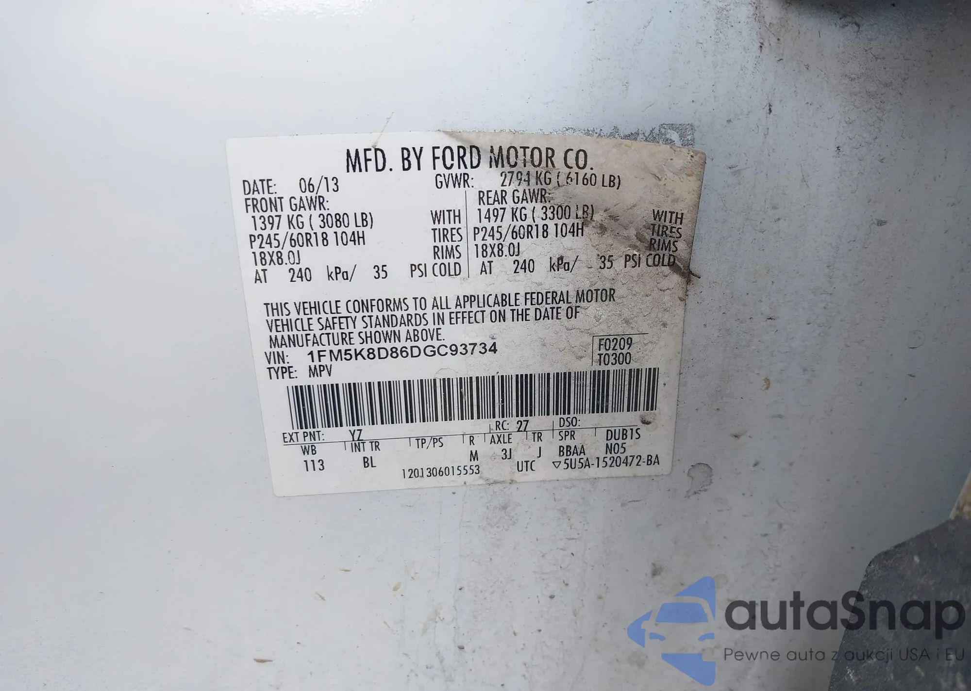 LOT: 42387802 VIN: WBAVB13516KR64646