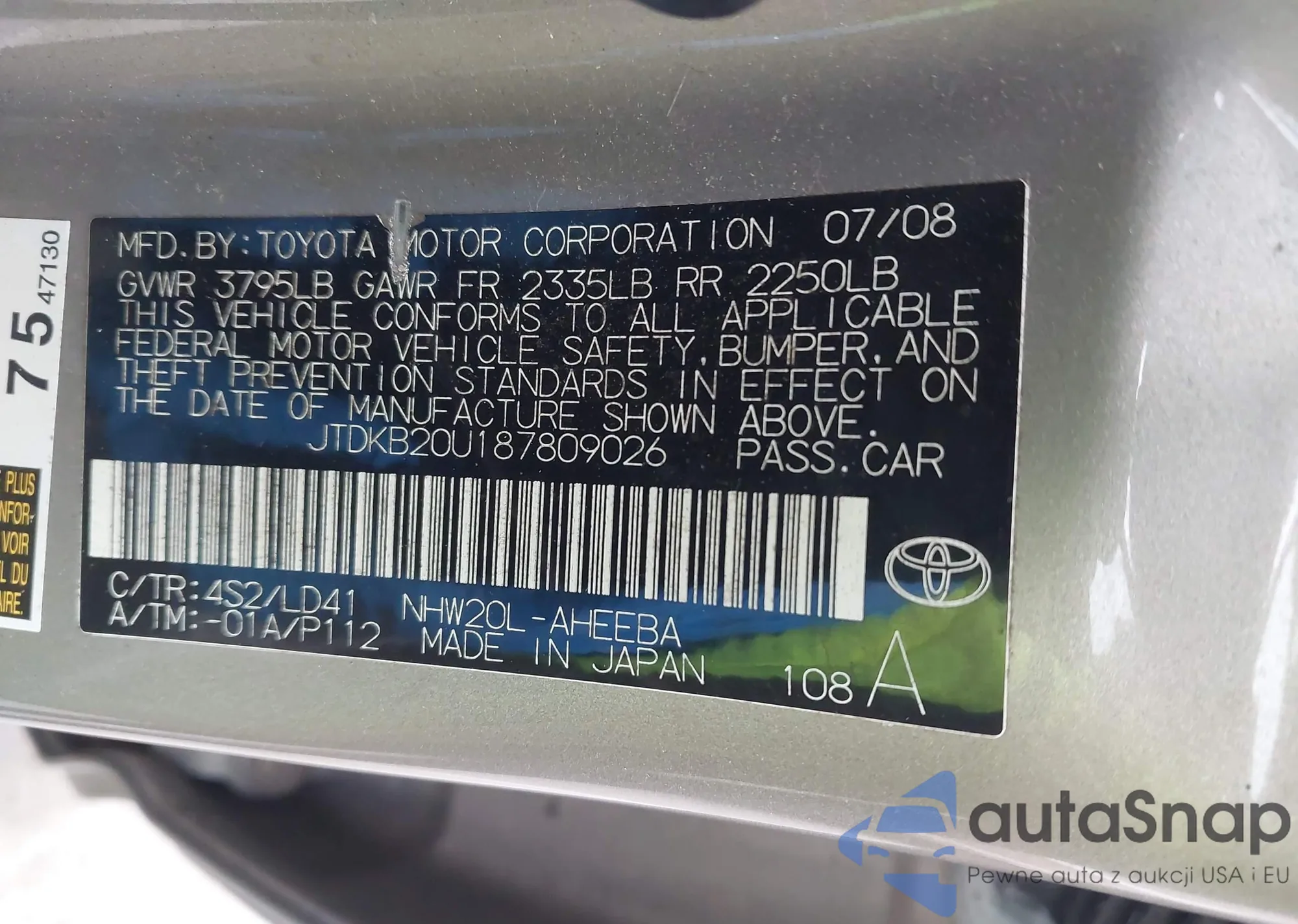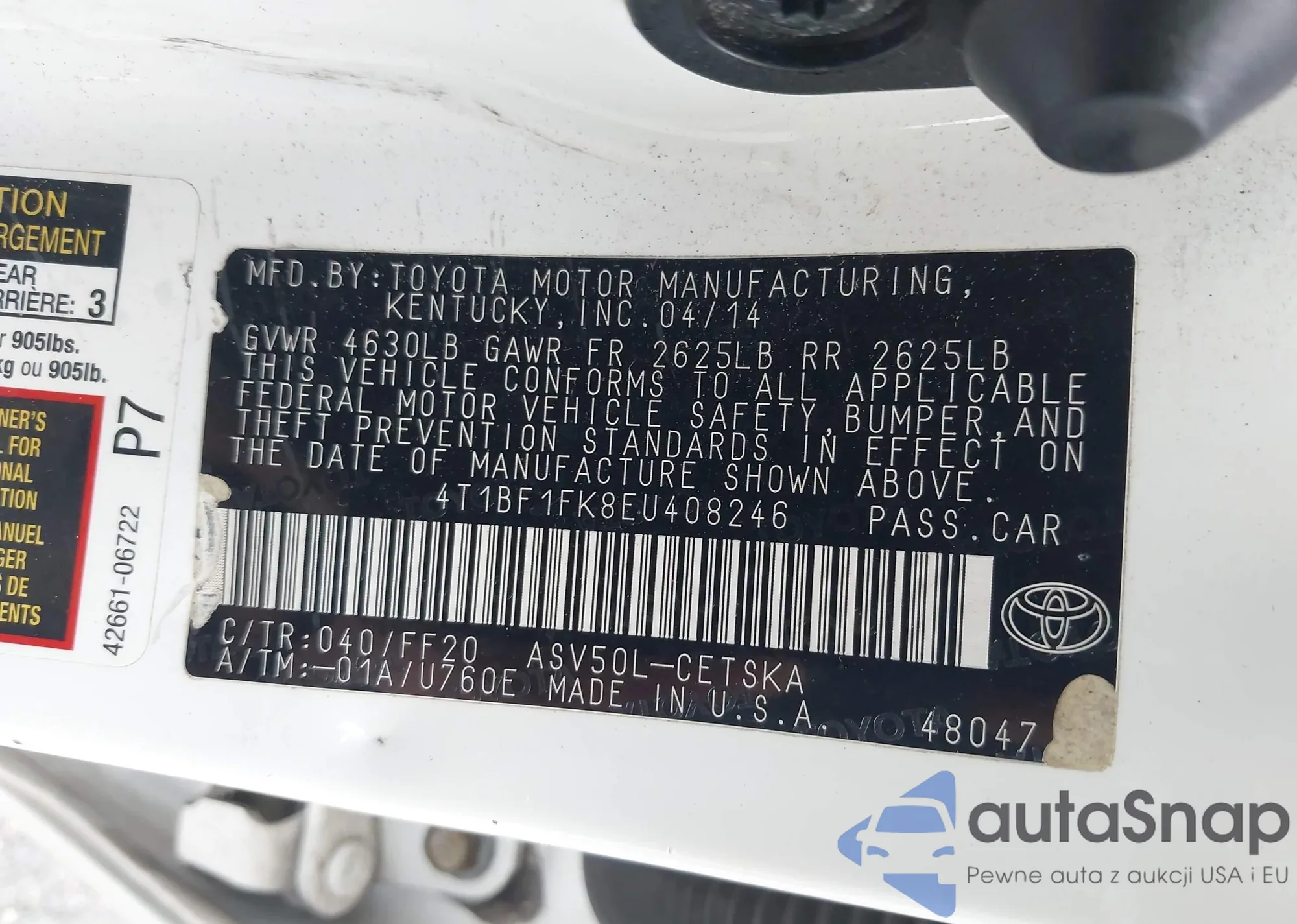 • VIN 4T1BF1FK8EU408246