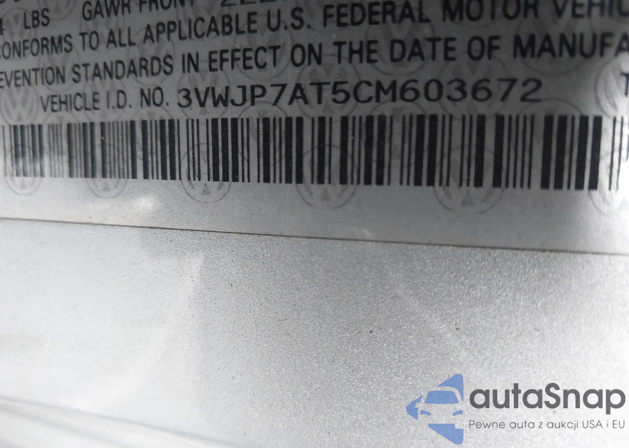 • VIN 3VWJP7AT5CM603672