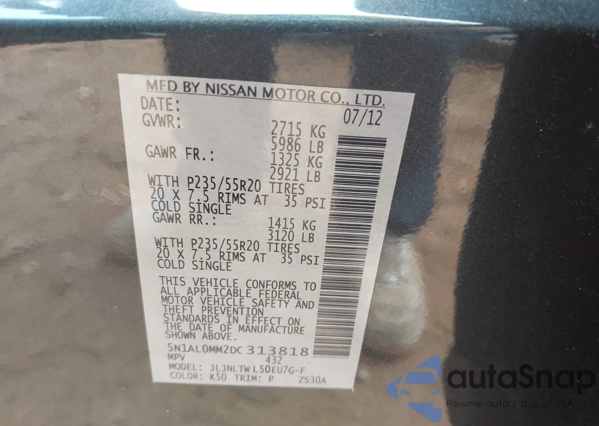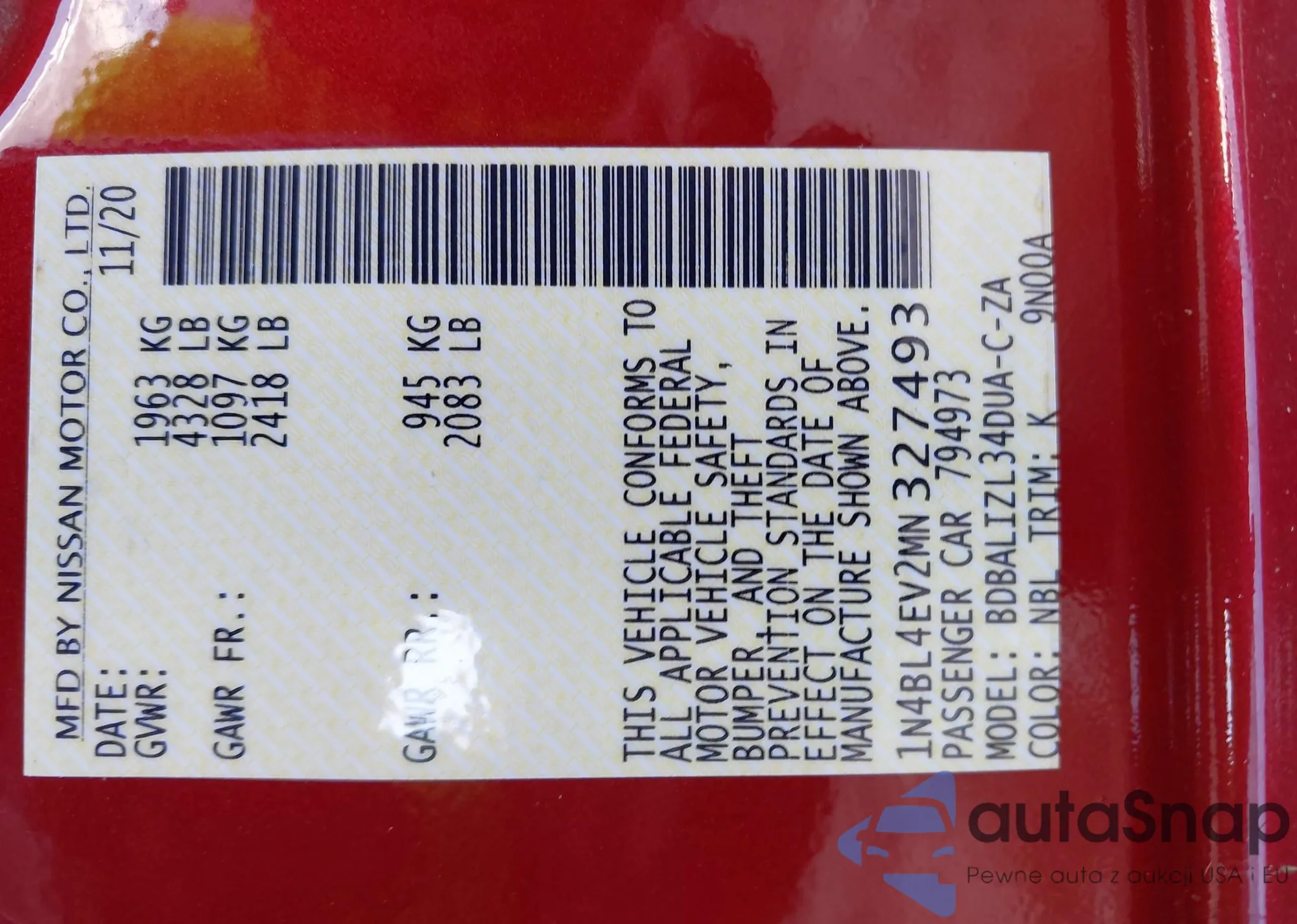 • VIN 1N4BL4EV2MN327493