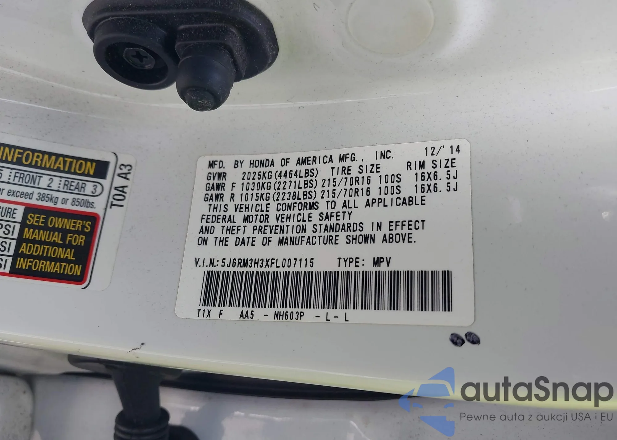 • VIN 5J6RM3H3XFL007115