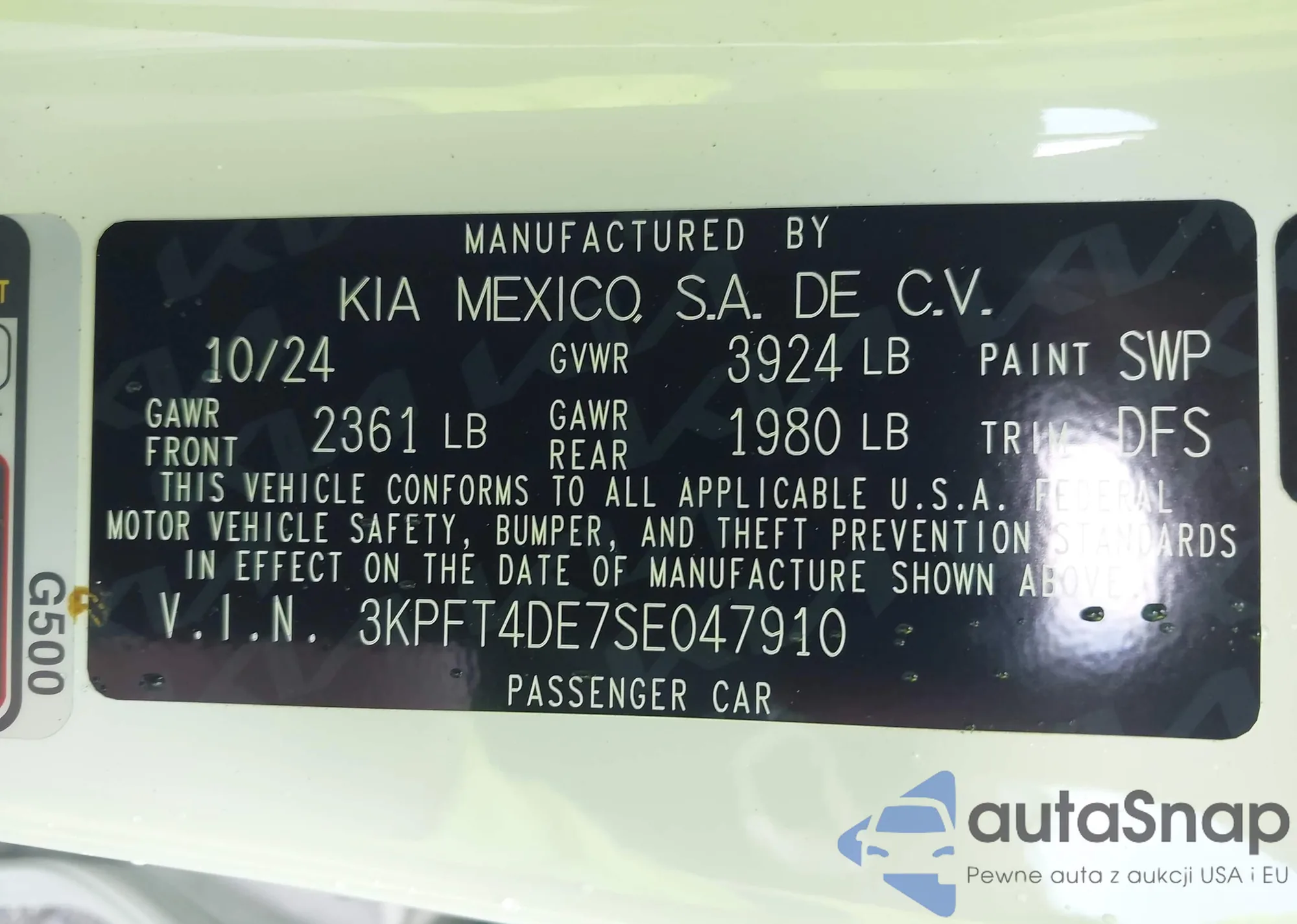 • VIN 3KPFT4DE7SE047910