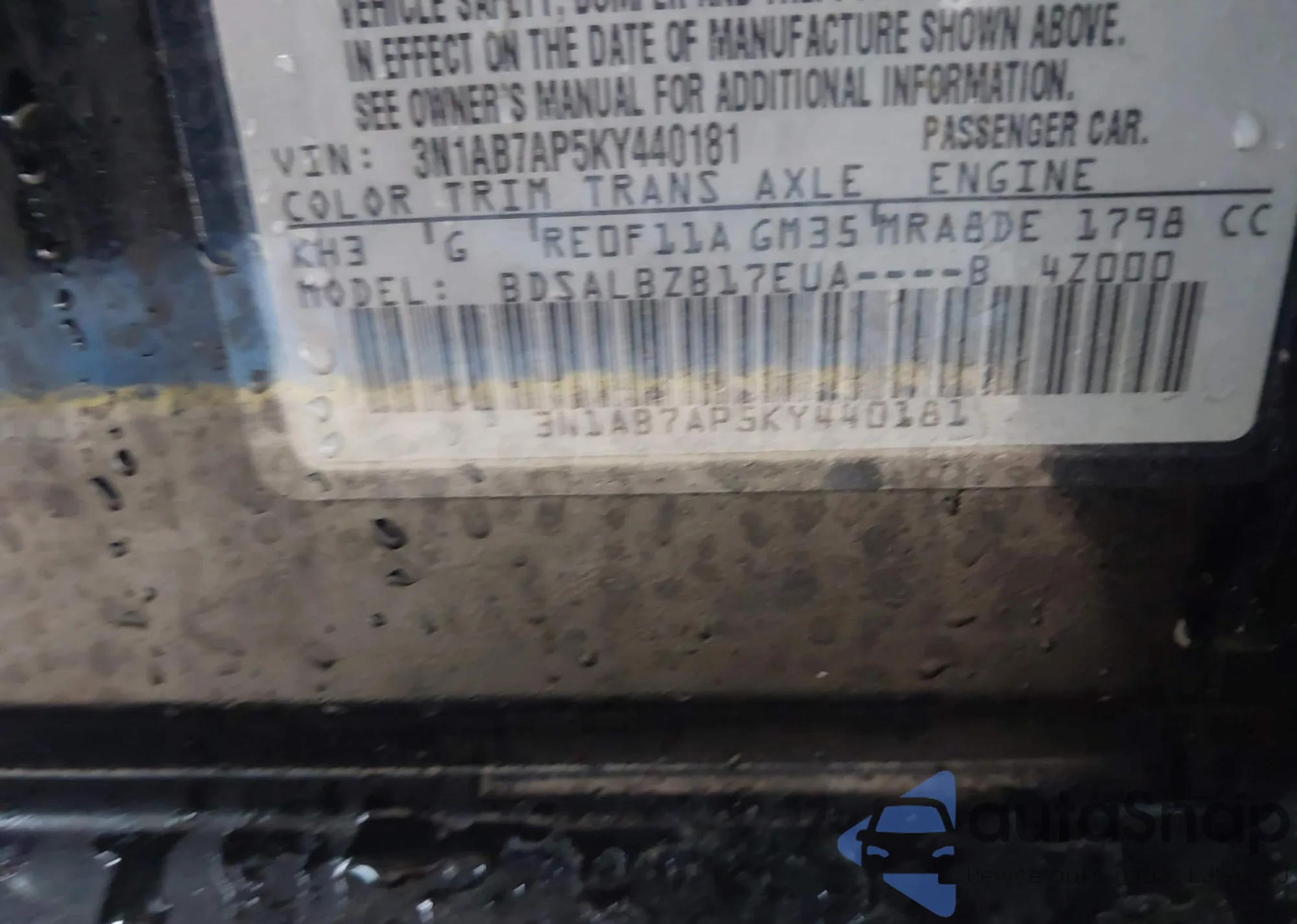 • VIN 3N1AB7AP5KY440181
