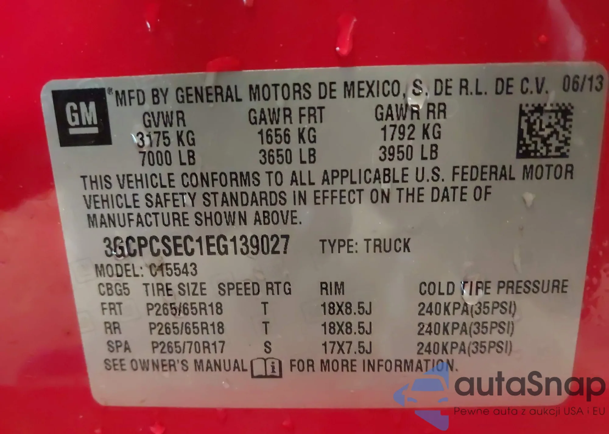 • VIN 3GCPCSEC1EG139027