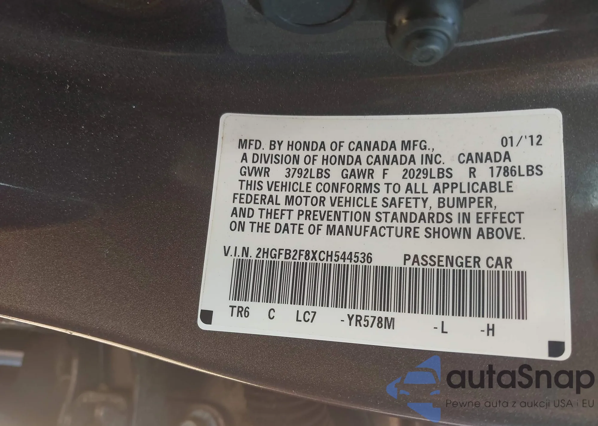 • VIN 2HGFB2F8XCH544536