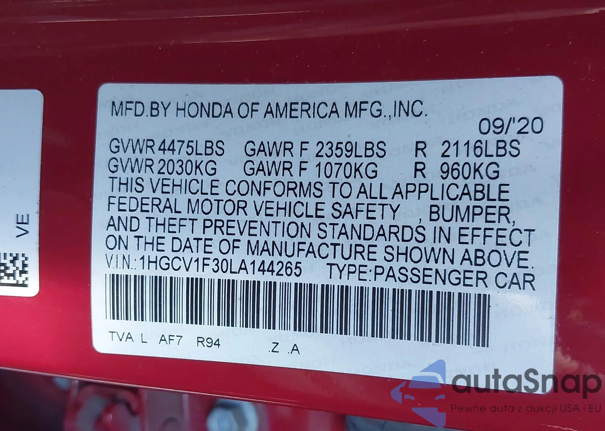 LOT: 41964341 VIN: 4T1A11AK4LU951771