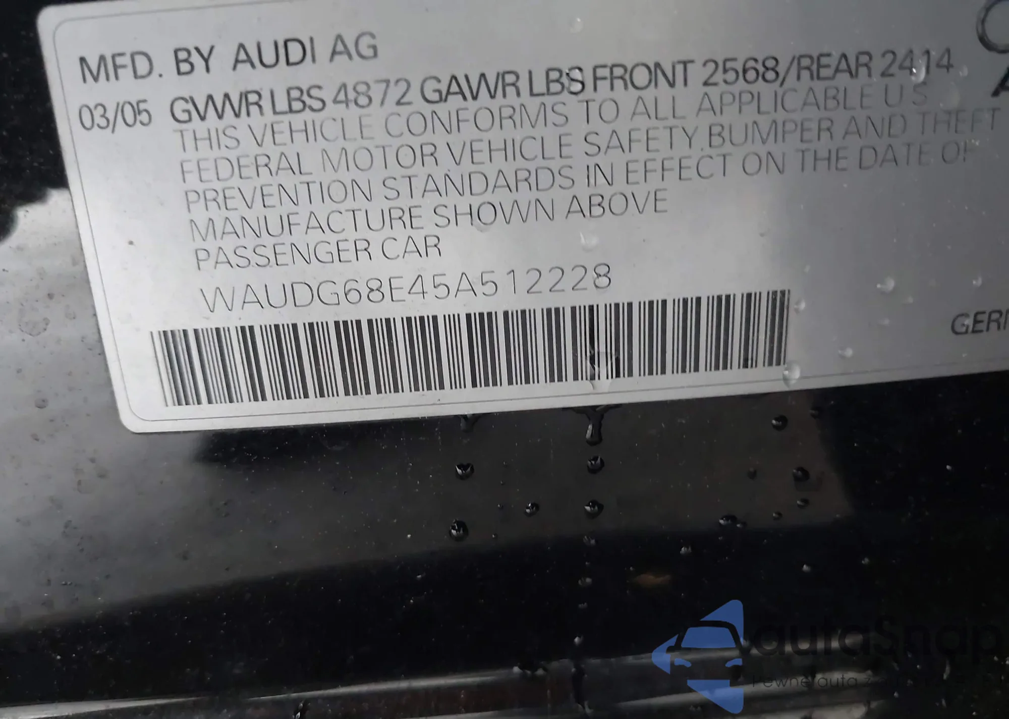 • VIN WAUDG68E45A512228
