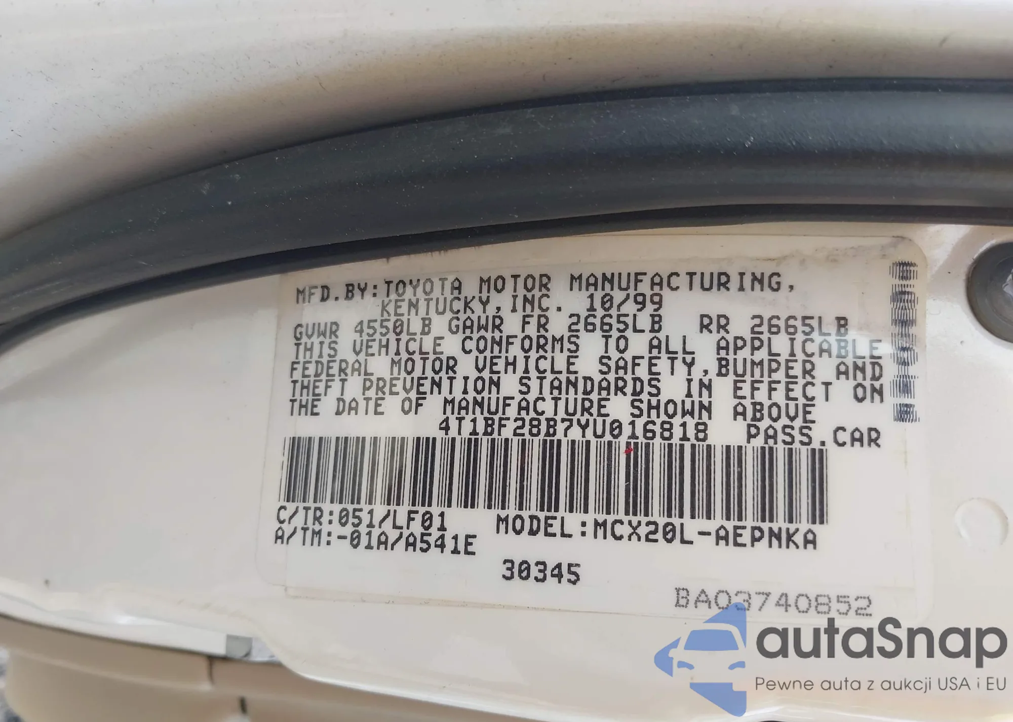 • VIN 4T1BF28B7YU016818