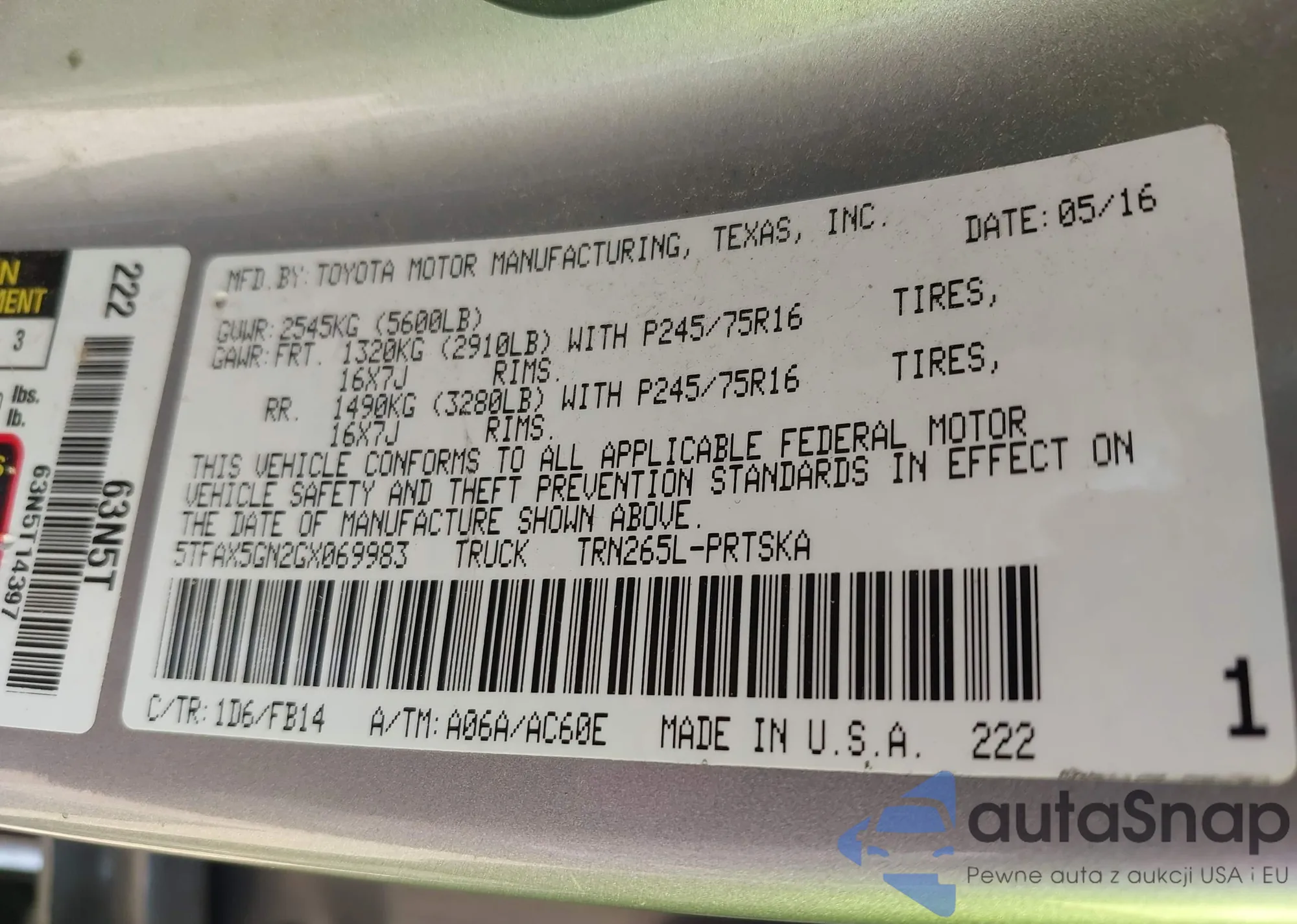LOT: 42061508 VIN: 4T3RWRFV2NU050785