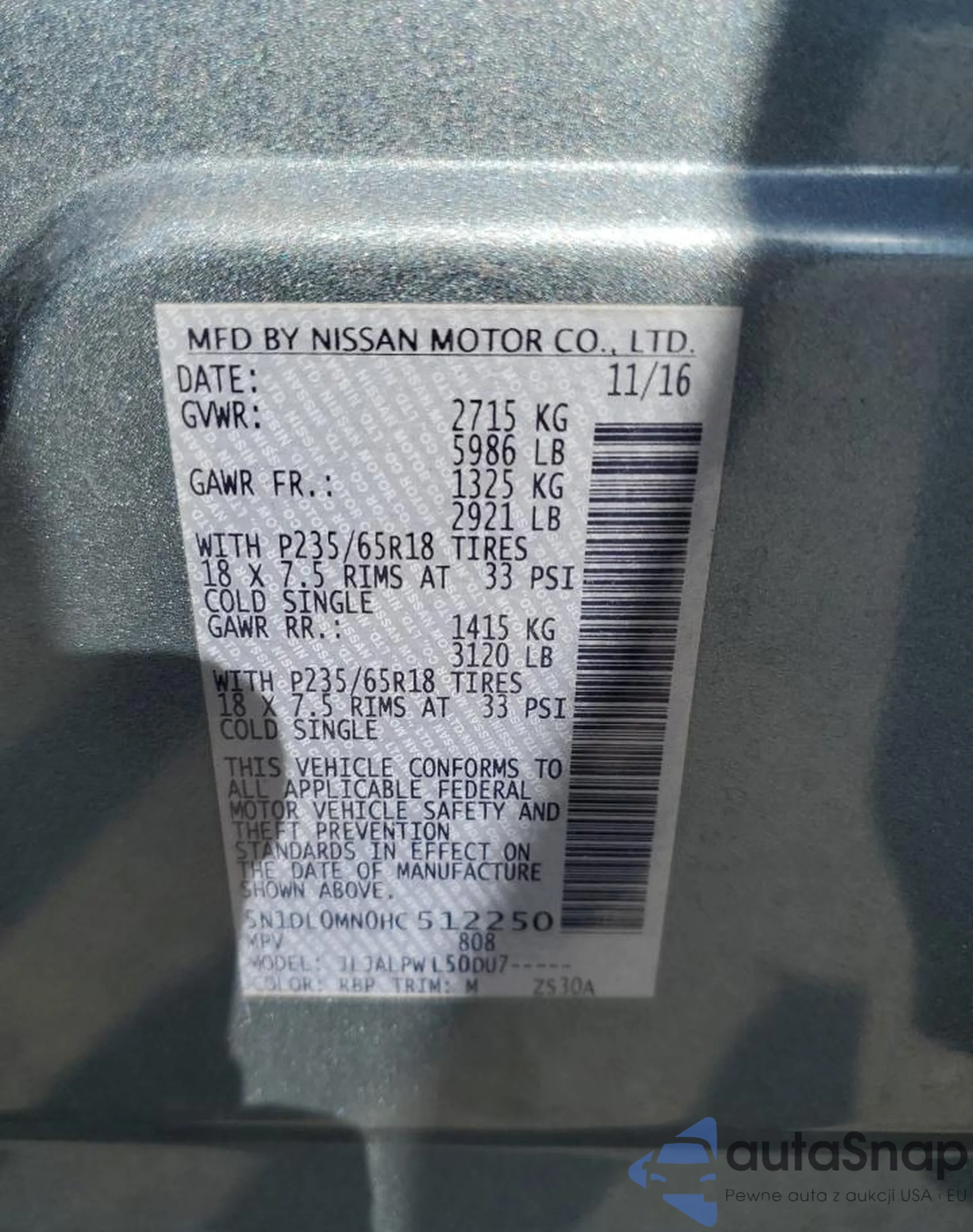 LOT: 51234535 VIN: 1N4AL3AP2HC265317