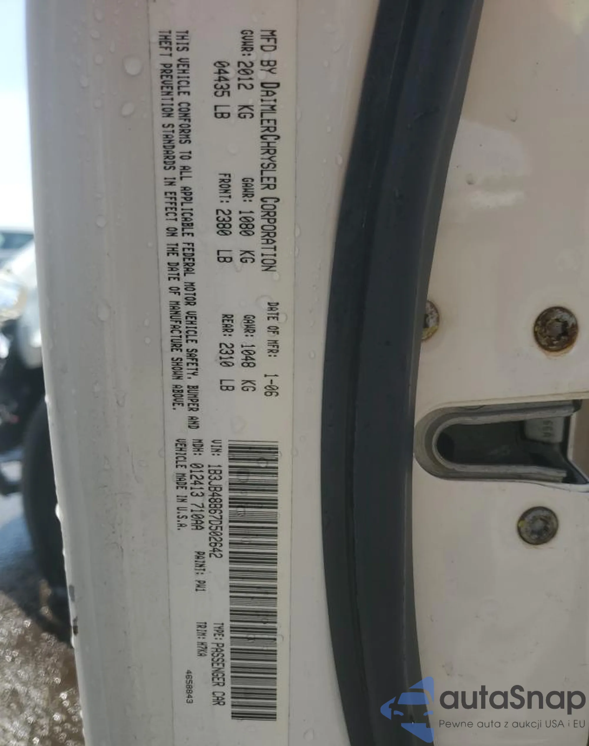 LOT: 53378935 VIN: 1B3JB48B67D502642