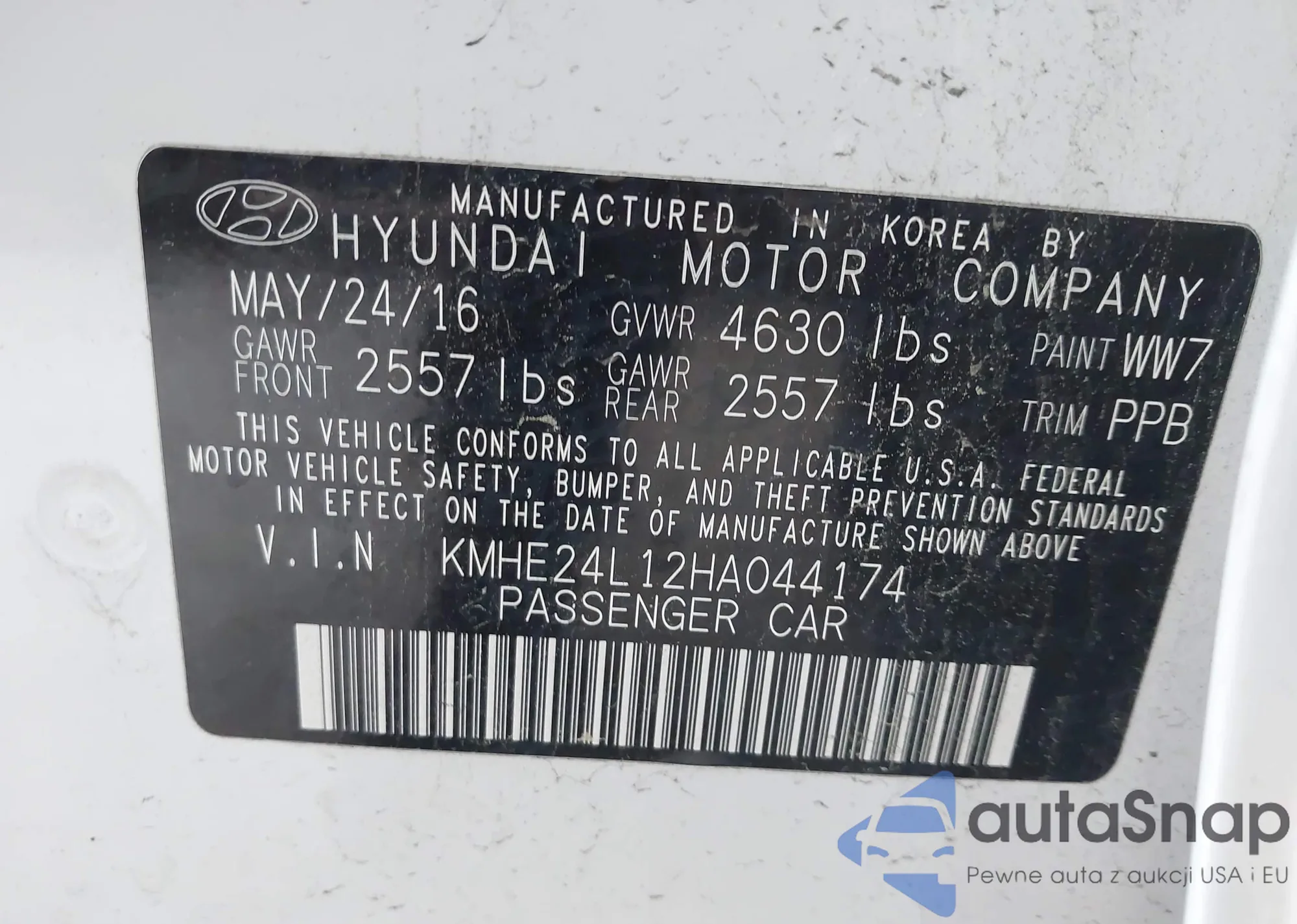 LOT: 42287079 VIN: KMHE24L12HA044174