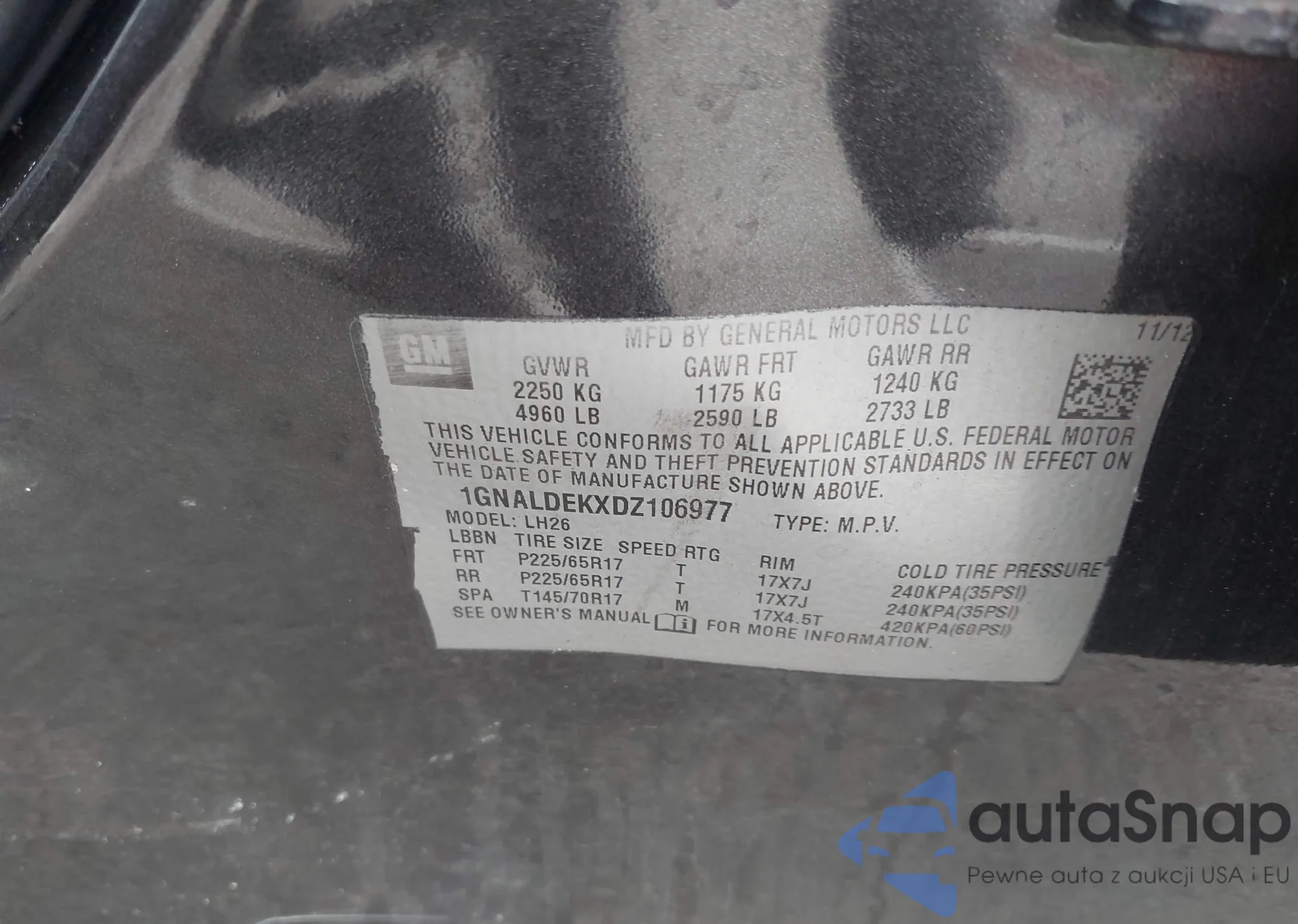 LOT: 42290825 VIN: 1GNALDEKXDZ106977