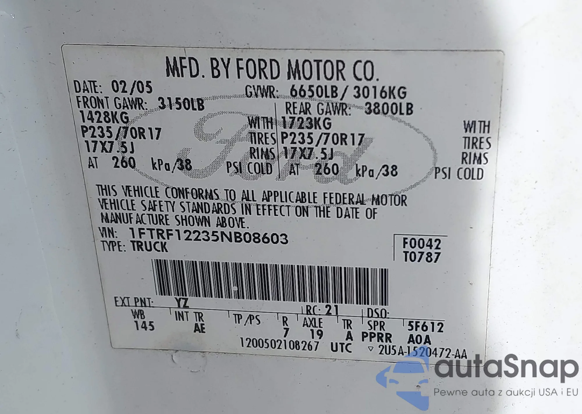 LOT: 42271773 VIN: 2G1FP22G022134223