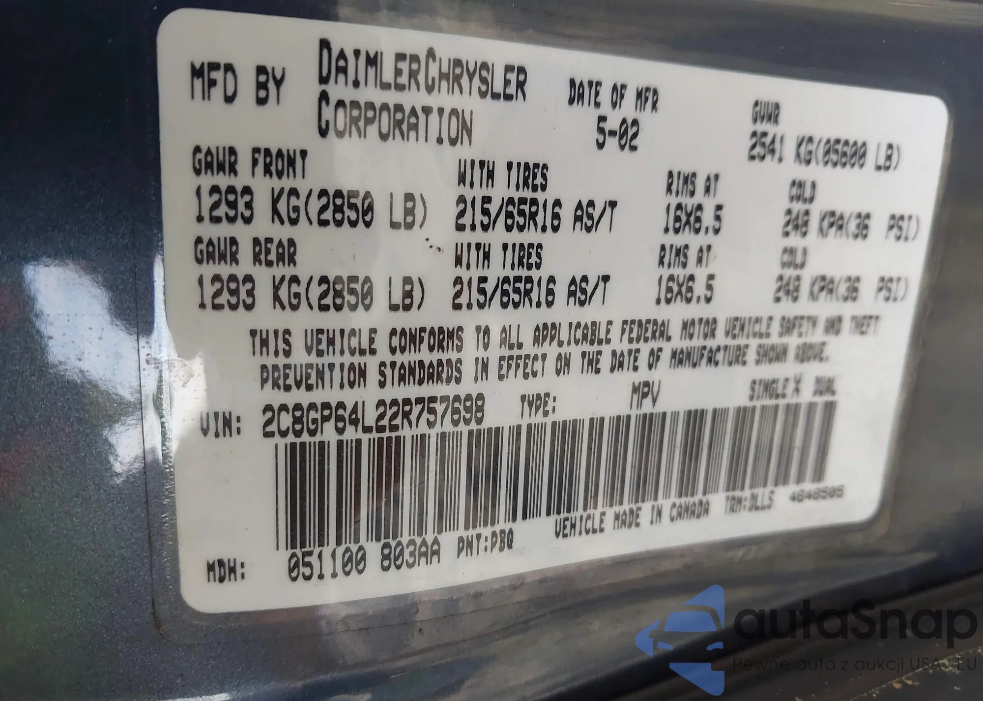 LOT: 42330401 VIN: 2C8GP64L22R757698