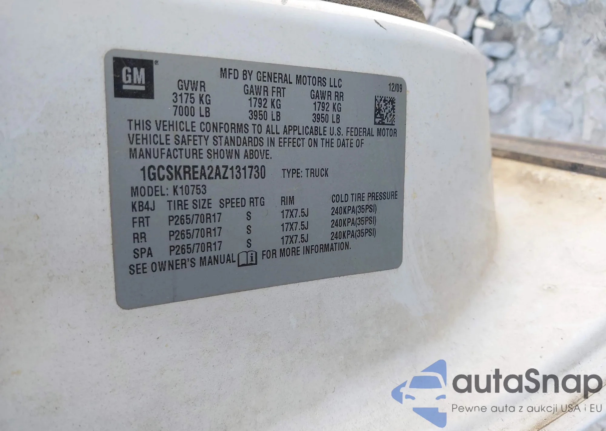 • VIN 1GCSKREA2AZ131730