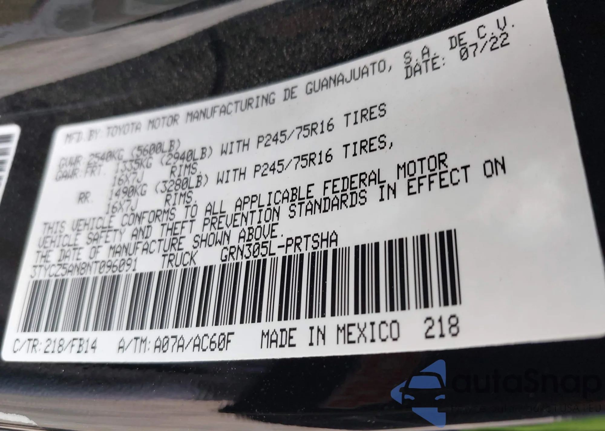 • VIN JTJAAAAB9RA025975