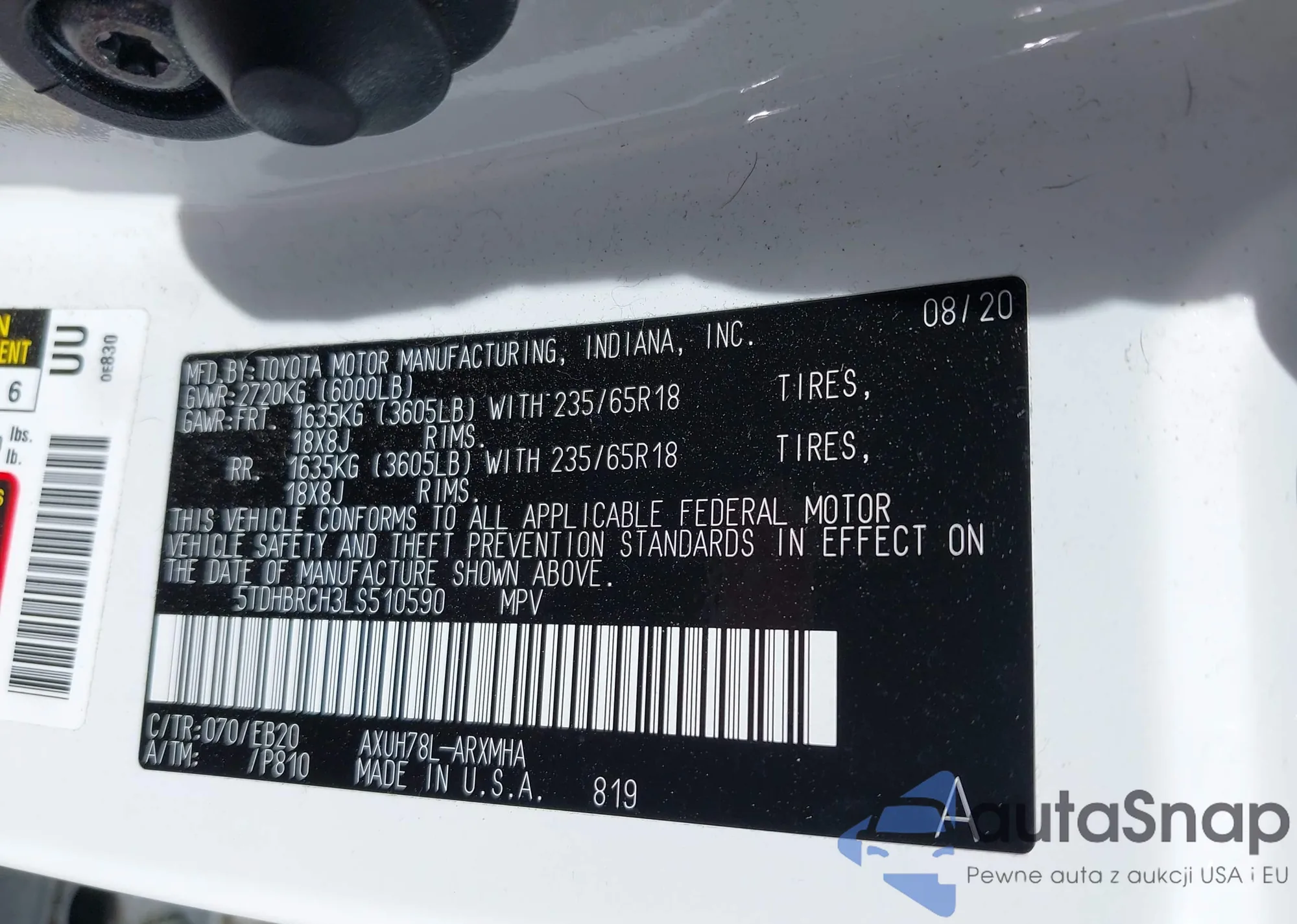 LOT: 42190774 VIN: 5TDHBRCH3LS510590