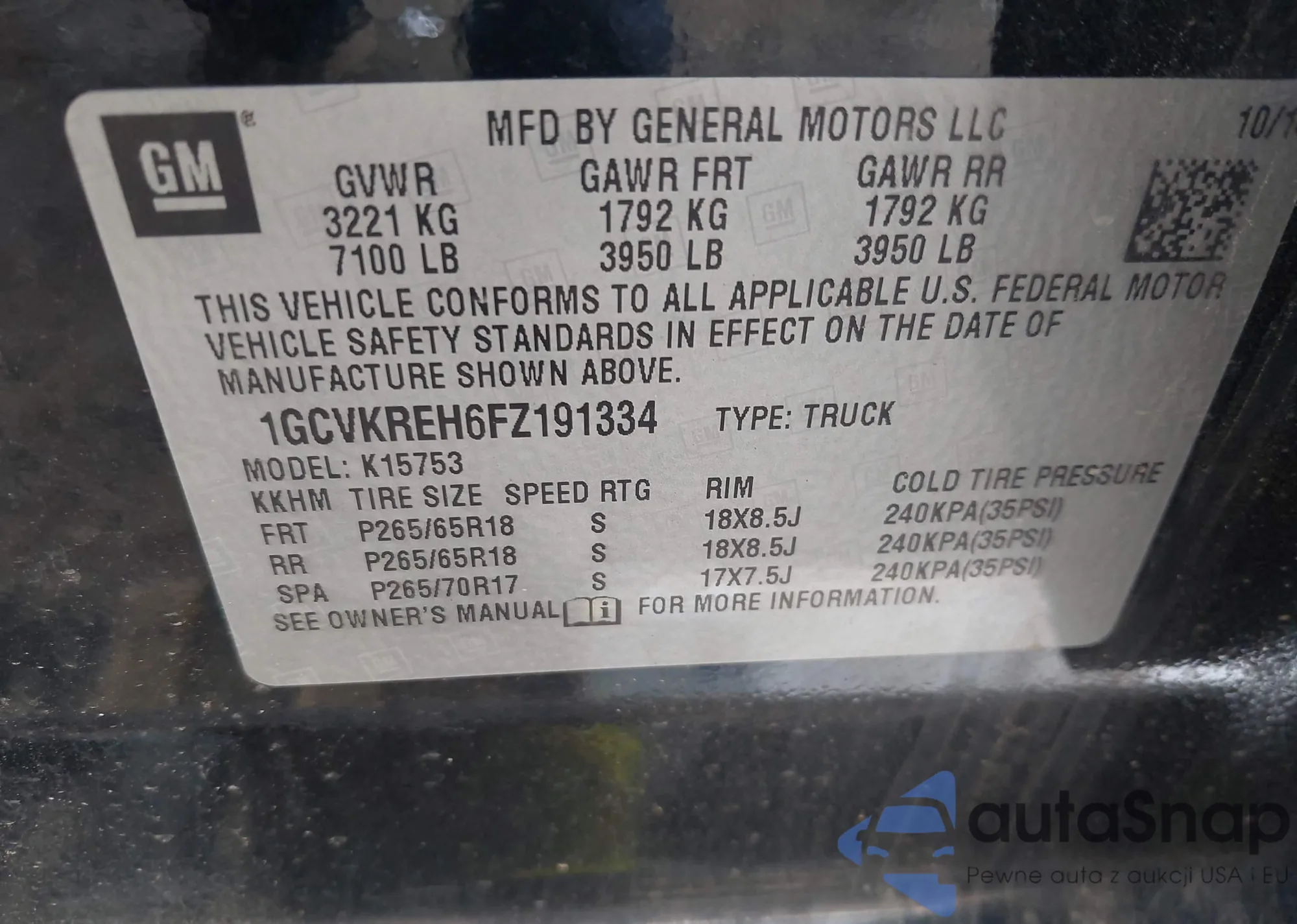 • VIN 1GCVKREH6FZ191334