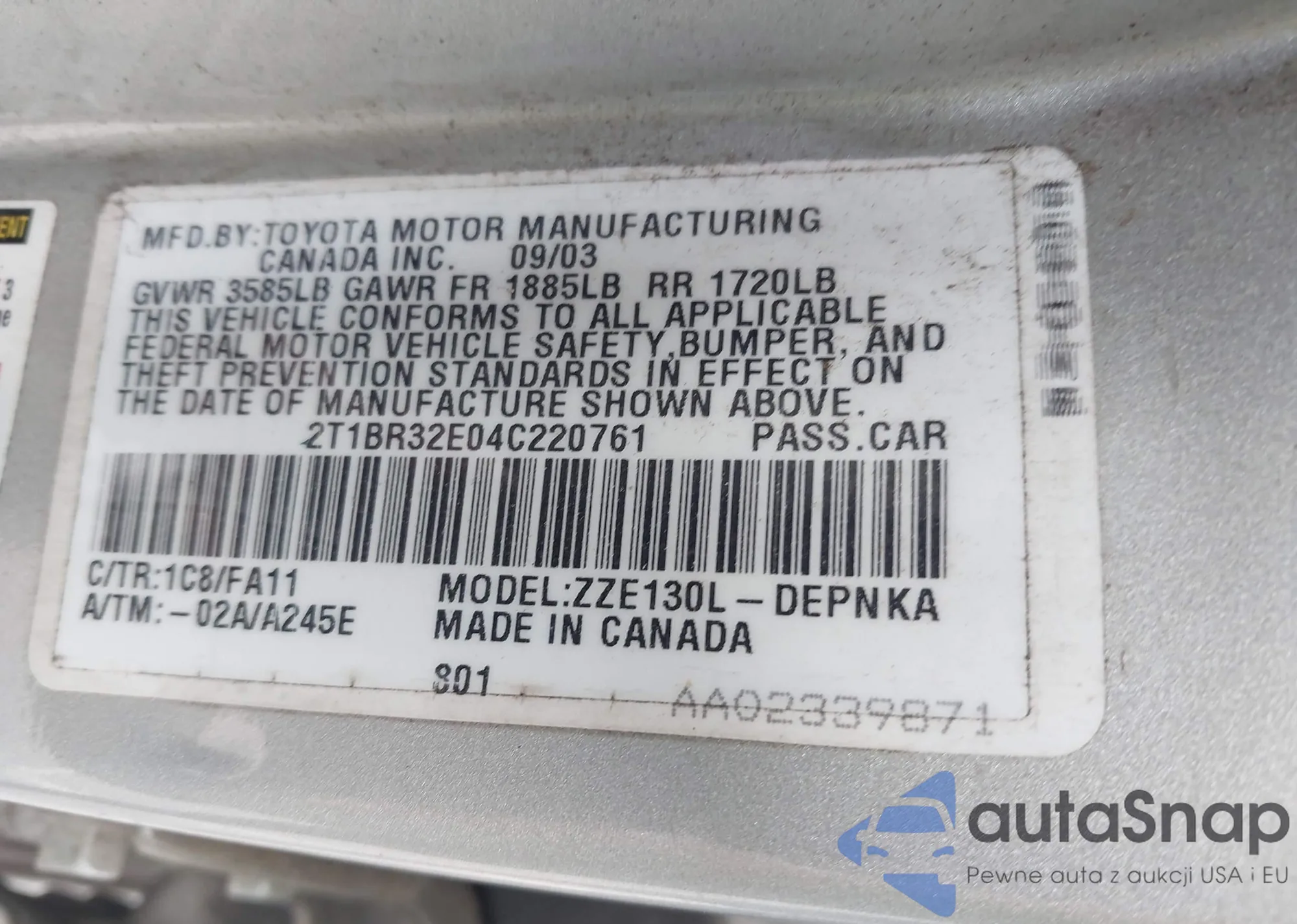LOT: 42391311 VIN: WBXPA73414WB21163
