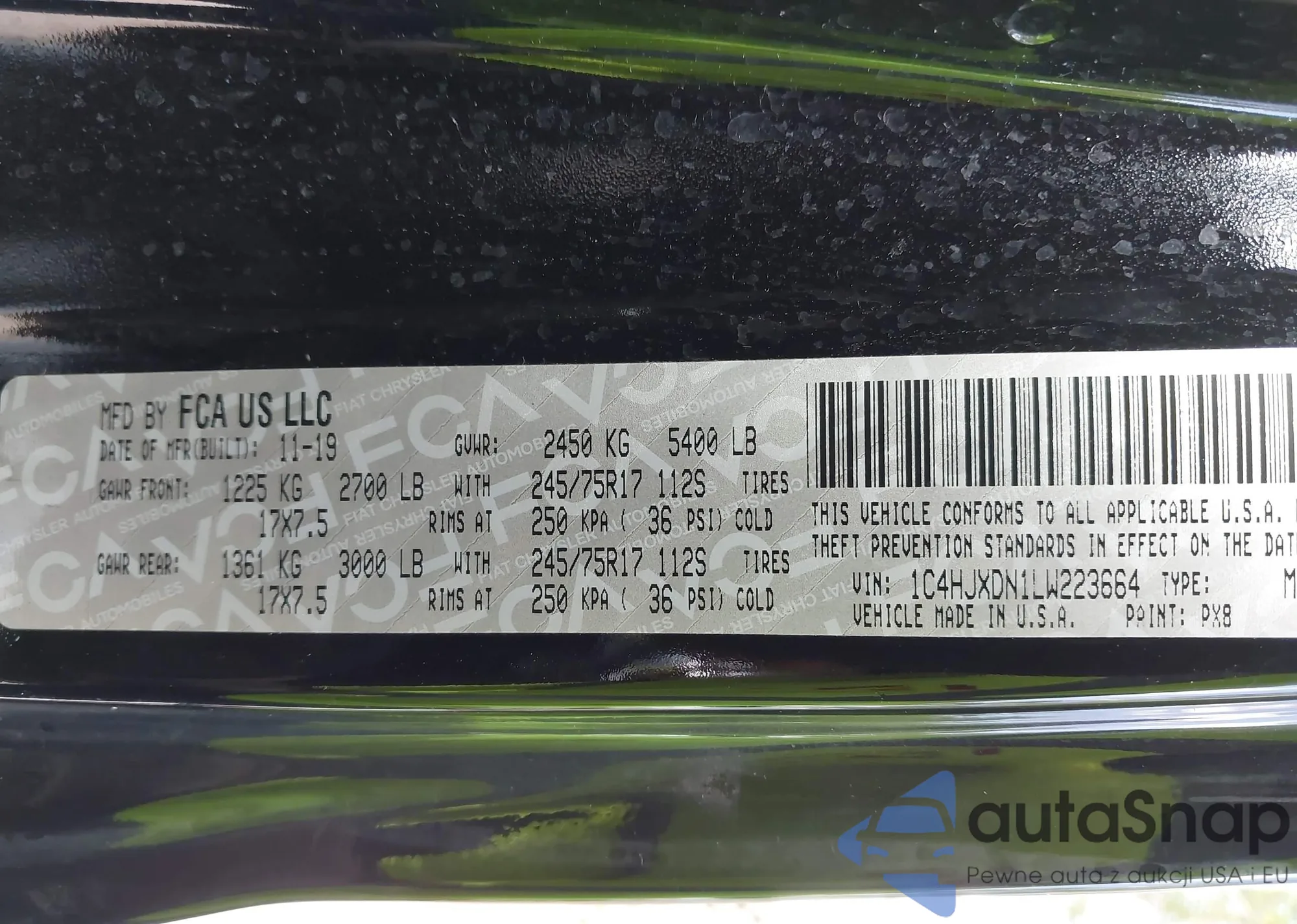 • VIN 1C4HJXDN1LW223664