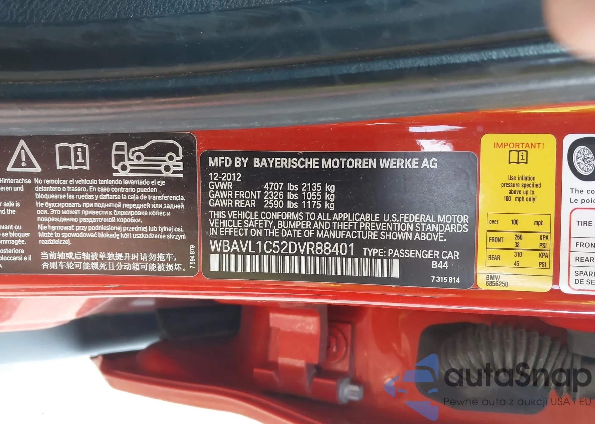 LOT: 42027278 VIN: WBAVL1C52DVR88401