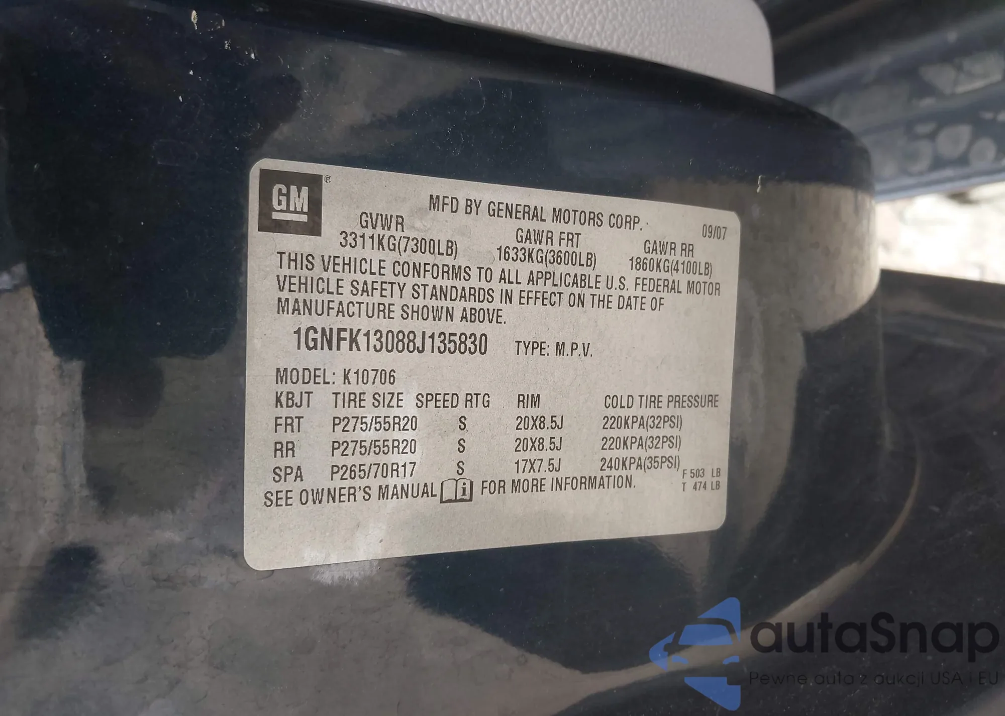 • VIN 1GNFK13088J135830