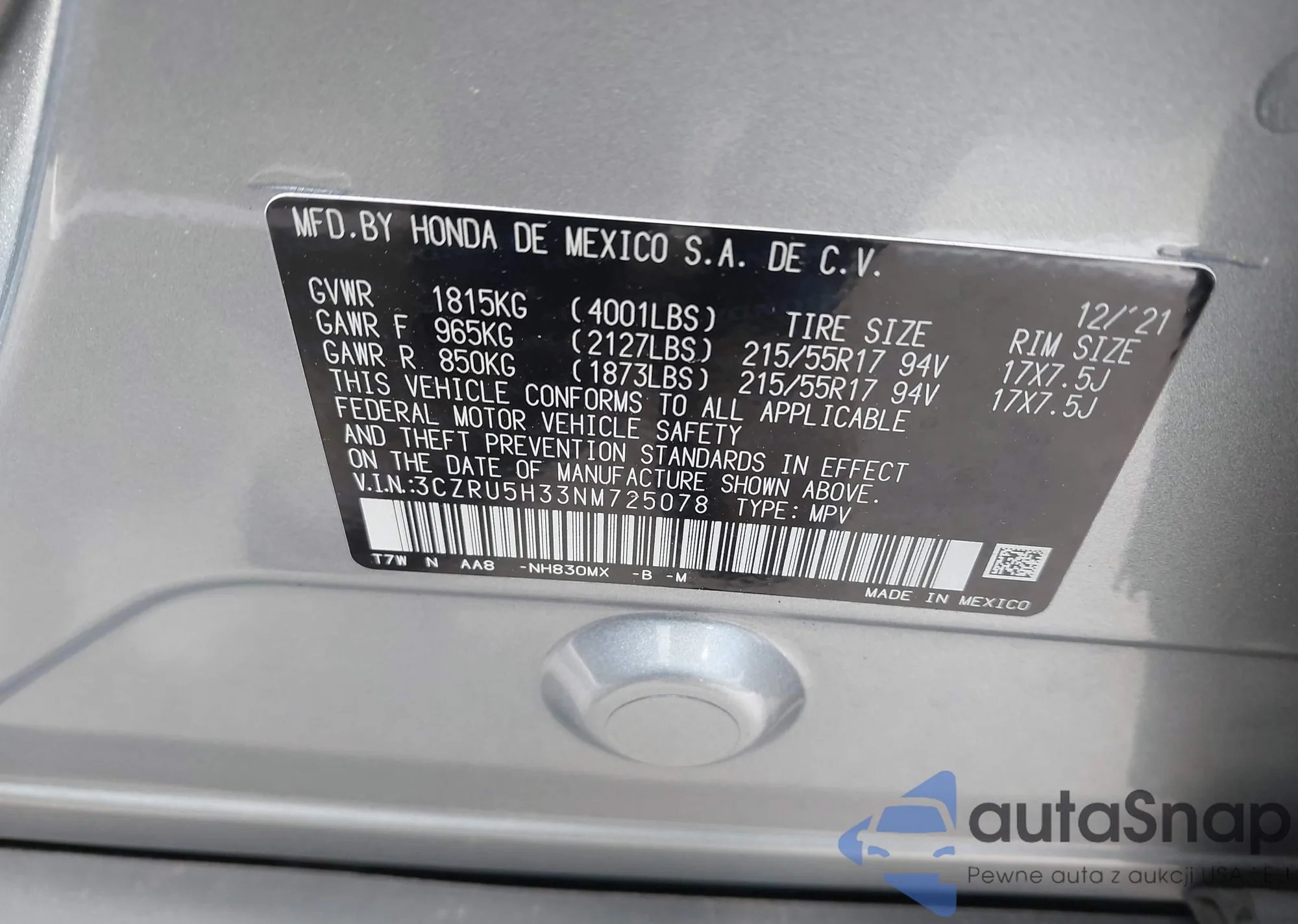 • VIN 7FARW2H82JE021578