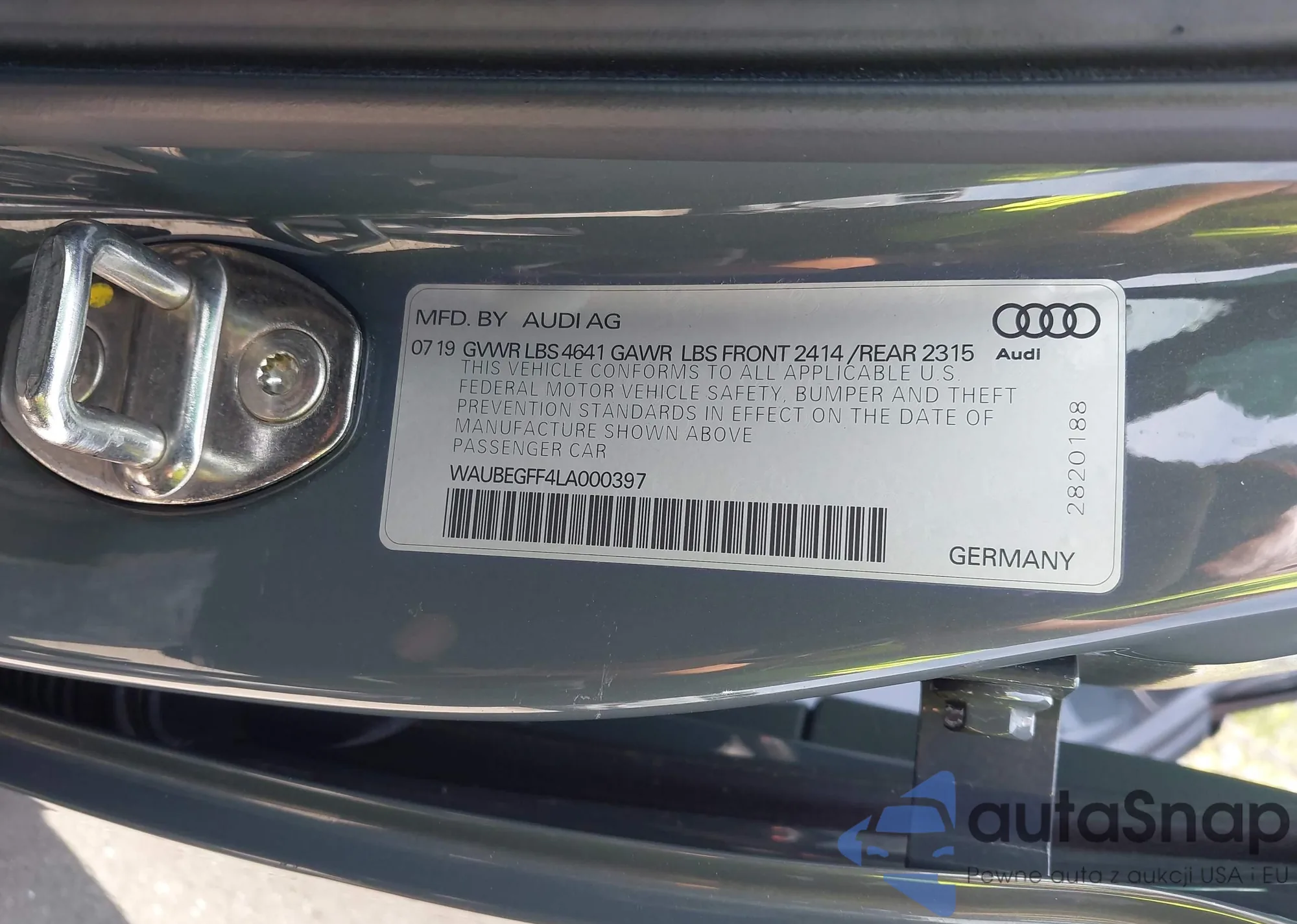 LOT: 42237992 VIN: WAUBEGFF4LA000397
