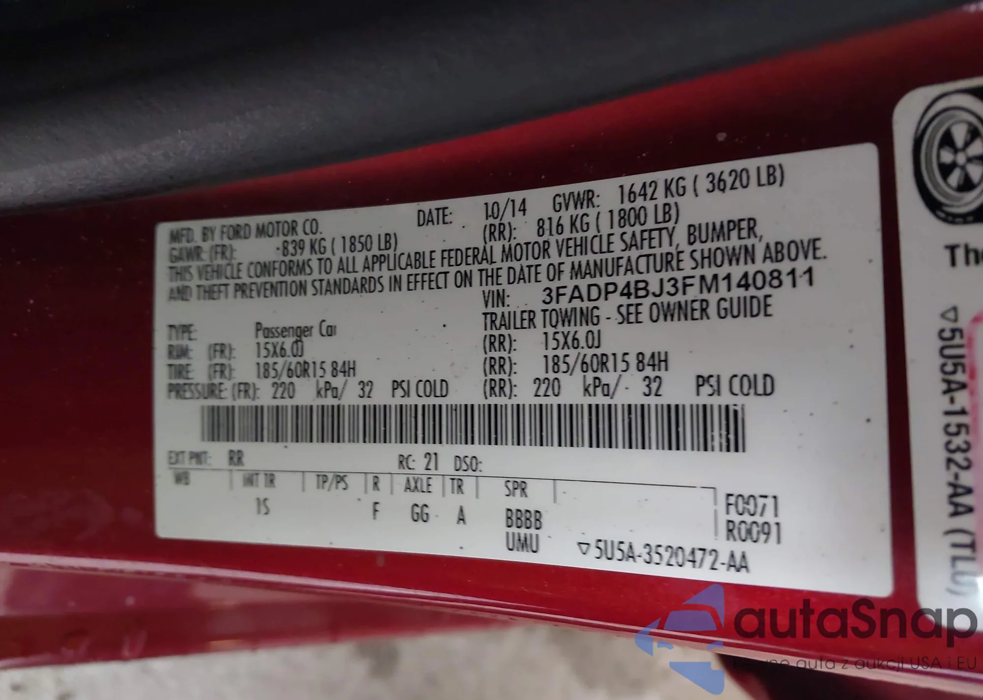 LOT: 42233599 VIN: 5YJYGDEE2MF200315