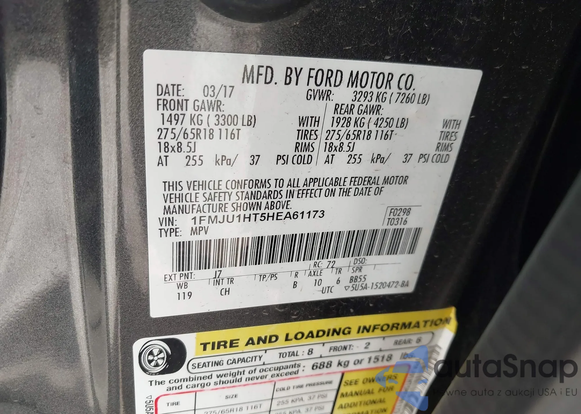 LOT: 41891937 VIN: 1FAHP3HNXAW118514