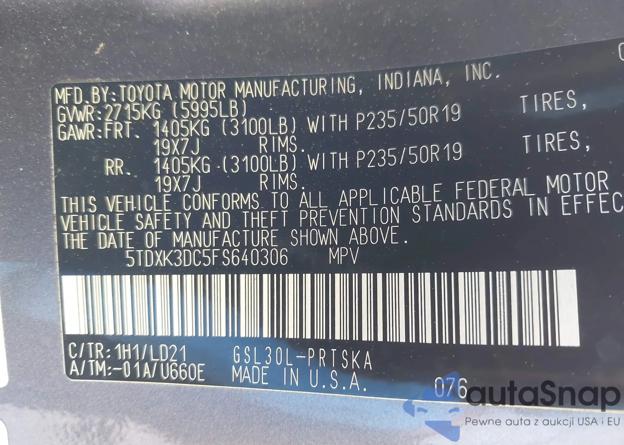 LOT: 42109088 VIN: 5TDXK3DC5FS640306
