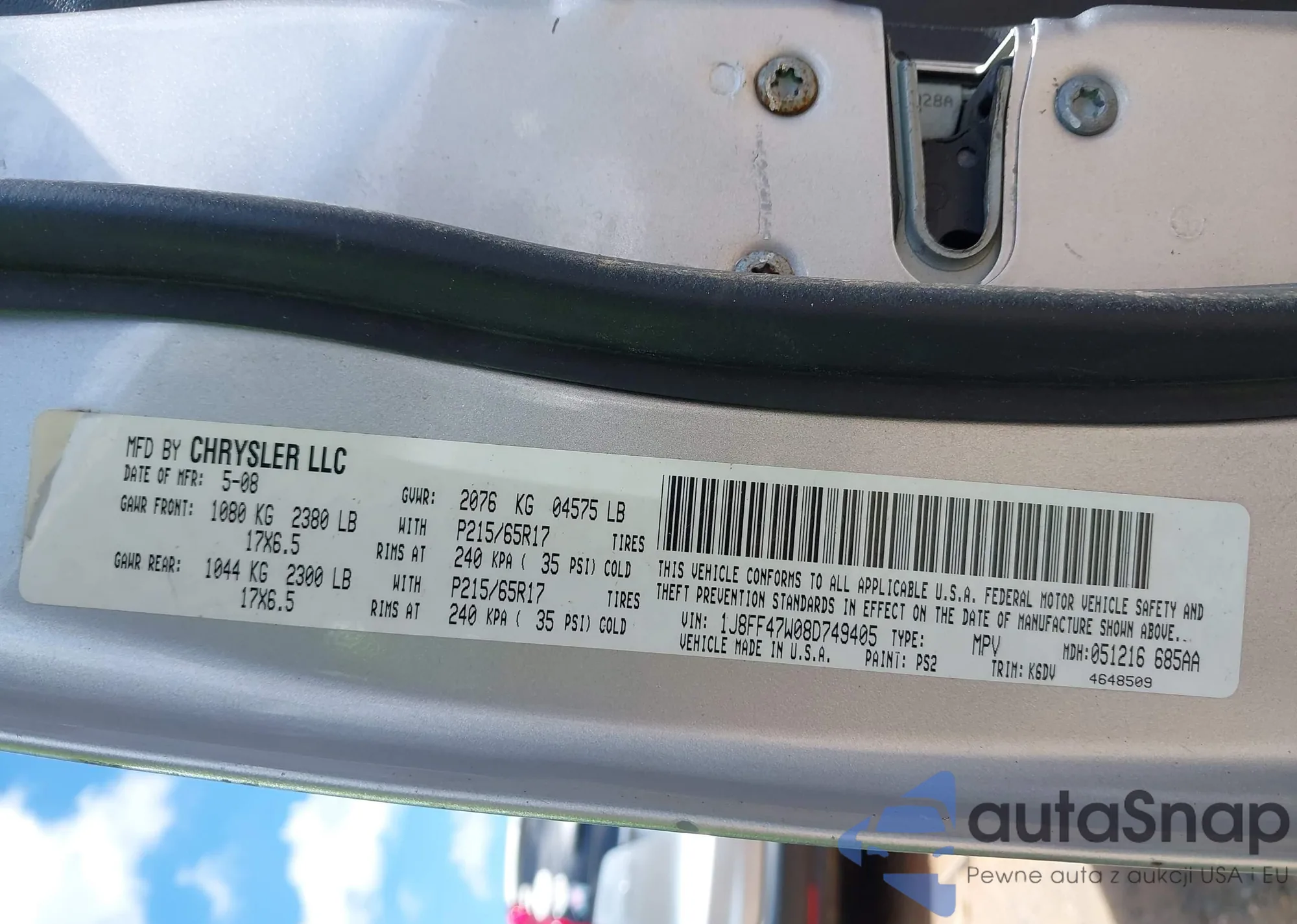 LOT: 42279250 VIN: 3GSCL53718S513938