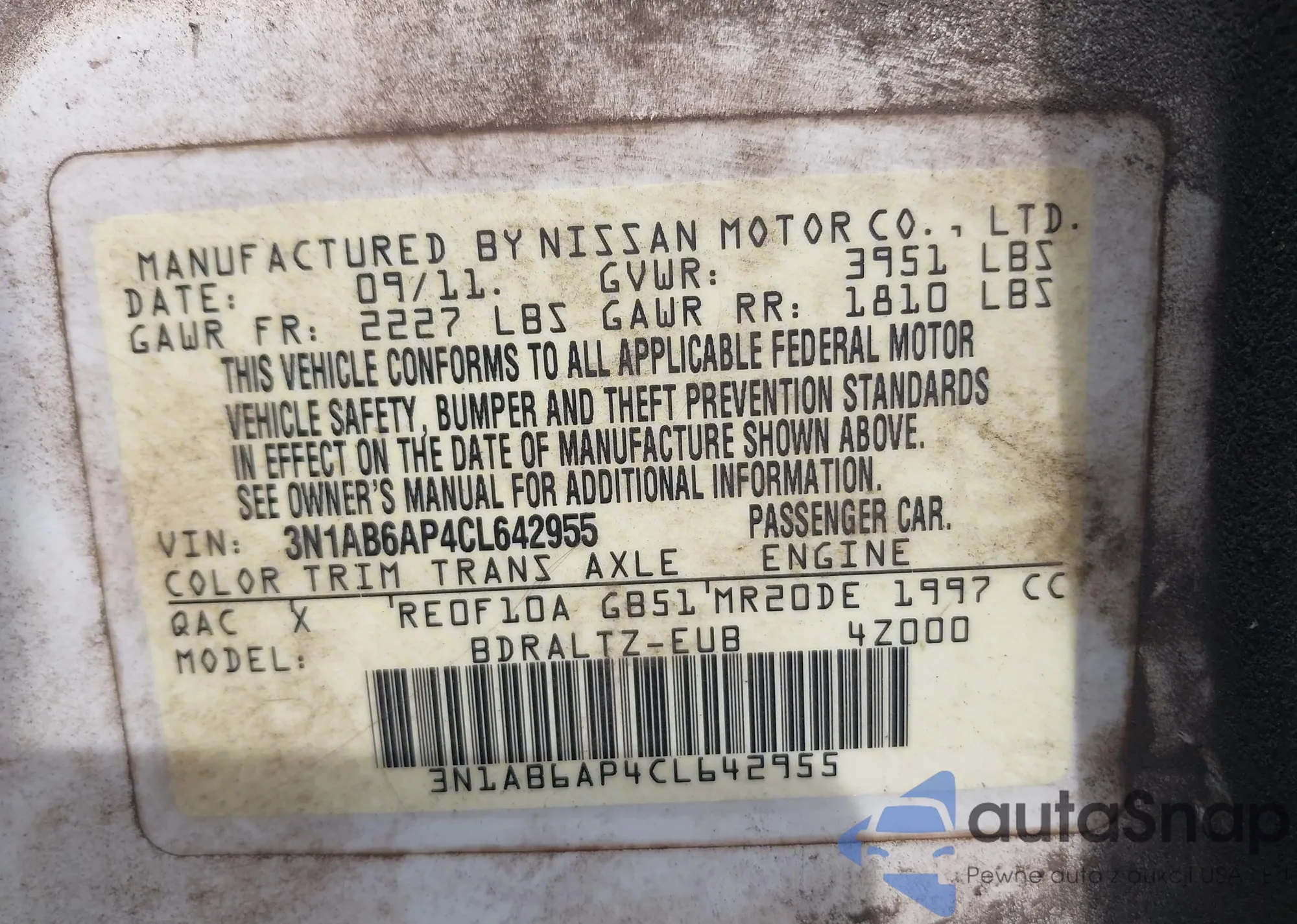 LOT: 42152480 VIN: 1N4BL4DW5NN338435