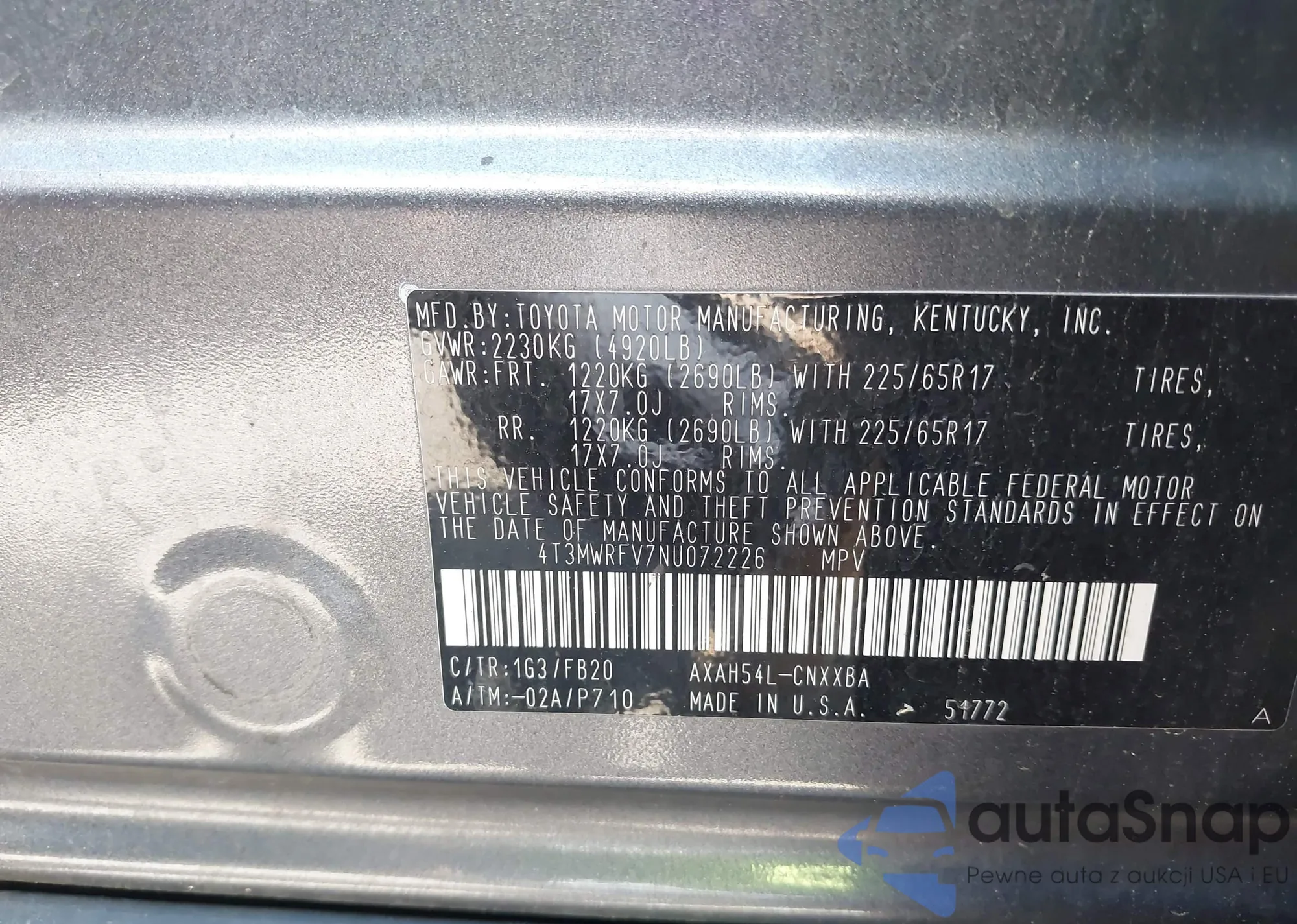 • VIN 4T3MWRFV7NU072226