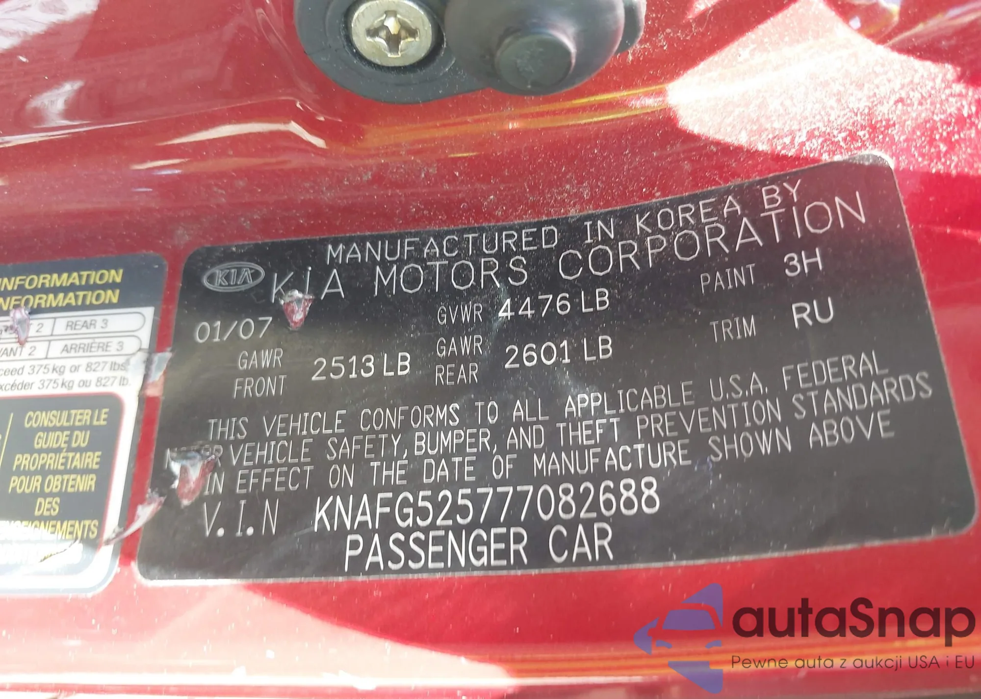 LOT: 42305341 VIN: KNAFG525777082688