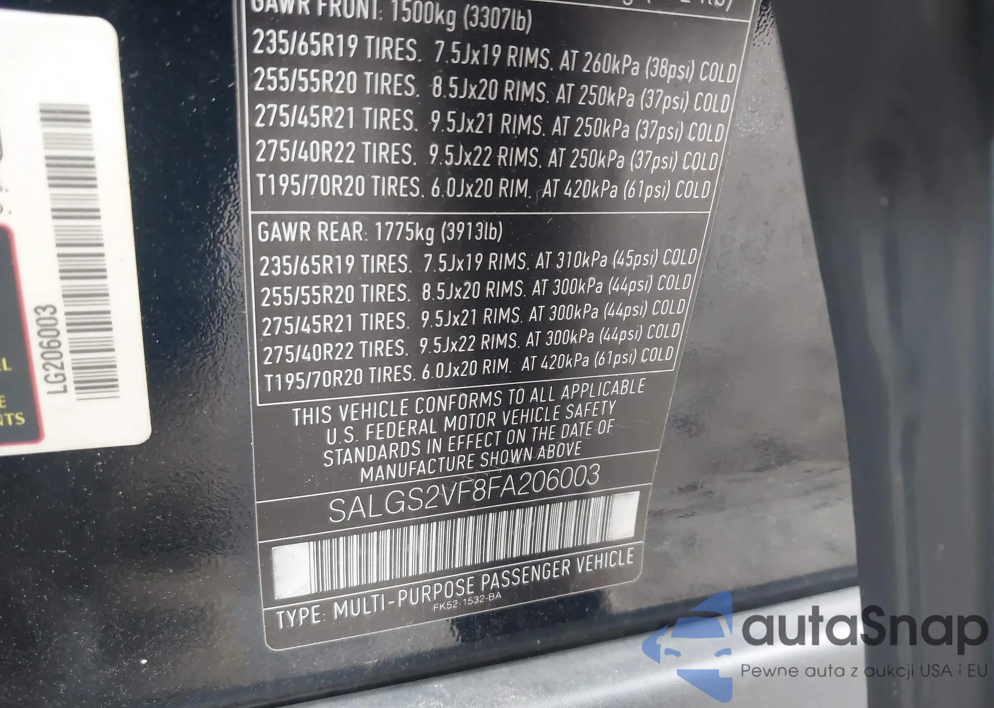 LOT: 41924522 VIN: SALGS2VF8FA206003